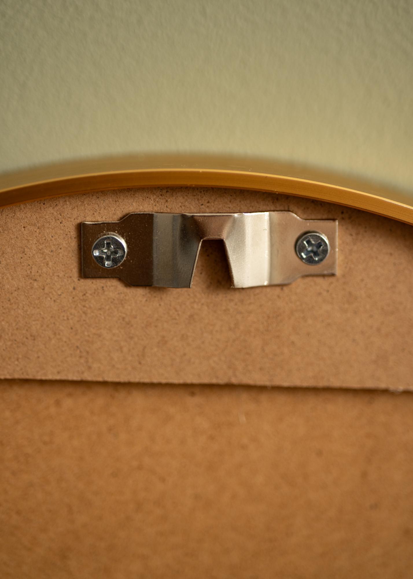 KAILA Round Mirror Edge Gold est disponible en plusieurs tailles différentes, et ce miroir a un diamètre de 30 cm. L'arrière du miroir est pourvu de deux fixations murales pour une suspension simple et stable au mur, et des vis et chevilles appropriées sont incluses.