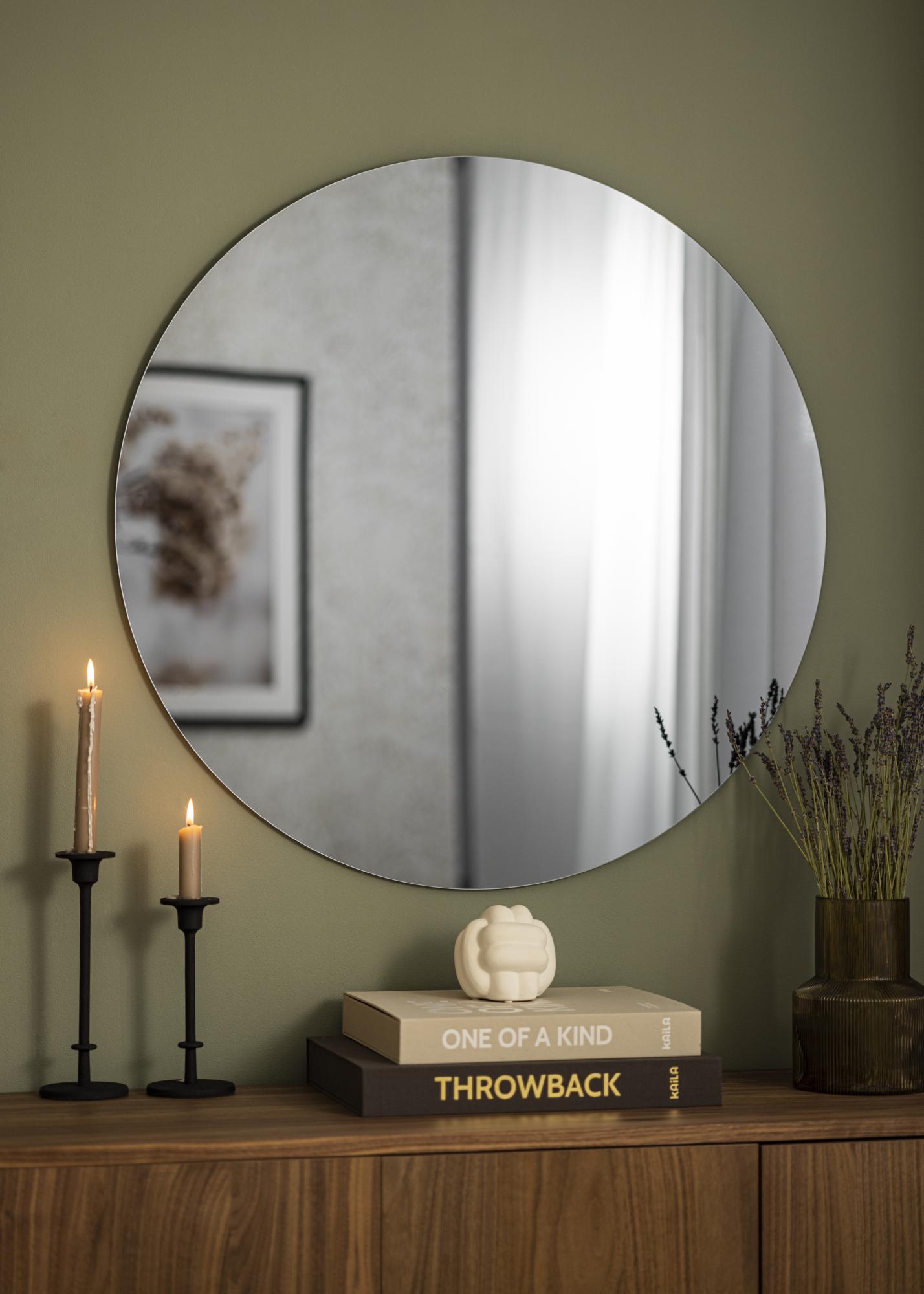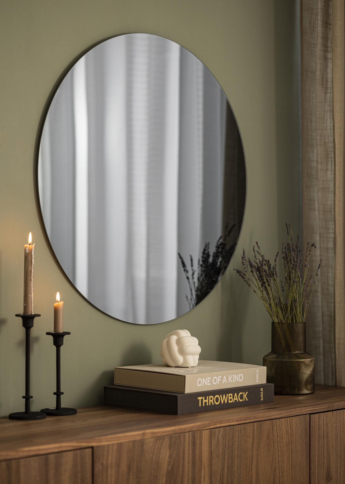 KAILA Miroir rond Smoked Grey disponible en différentes tailles, et cette variante a un diamètre de 80 cm. Parfait comme miroir de vestibule ou comme élément de décoration élégant et pratique dans le salon ou la chambre à coucher.
