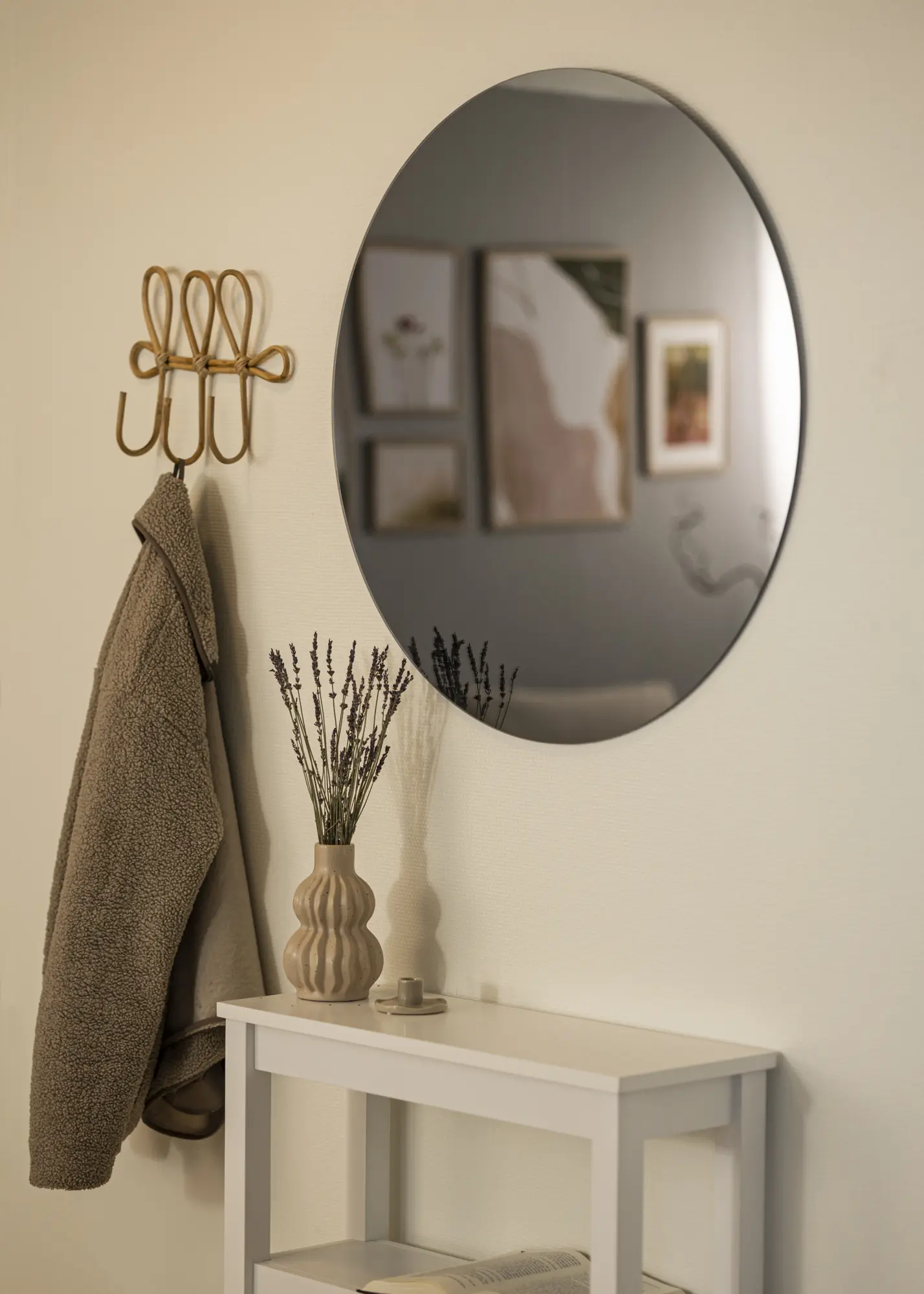 Un miroir rond avec un élégant verre miroir teinté gris qui sera un détail de décoration tendance dans votre maison ! Ce miroir est également très mince et a un design minimaliste en raison de l'absence de cadre, ce qui le rend très élégant et encore plus moderne.