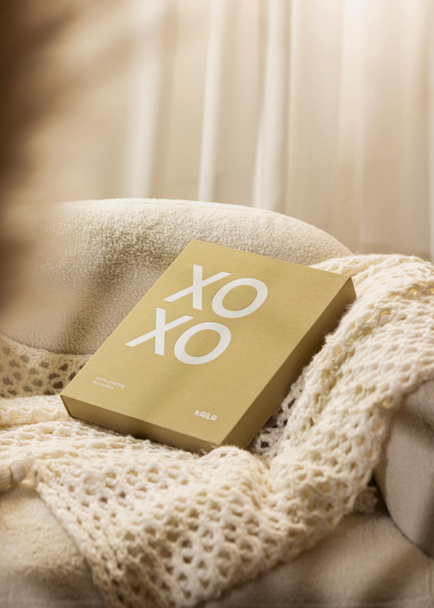 Ce bel abum photo est conçu comme un Coffee Table Book tendance et est également appelé unCoffee Table Photo Album. La couverture est élégamment habillée de textile couleur vanille et sur le devant et le dos de l'album se trouve un imprimé blanc avec la célèbre salutation d'au revoir "XOXO" qui signifie baisers et câlins. Ce titre tendance est également complété par un sous-titre qui précise "A little something that matters", imprimé dans le coin inférieur gauche de l'album. C'est un album photo très esthétique avec un design original et ludique qui est assuré de se démarquer de la foule.