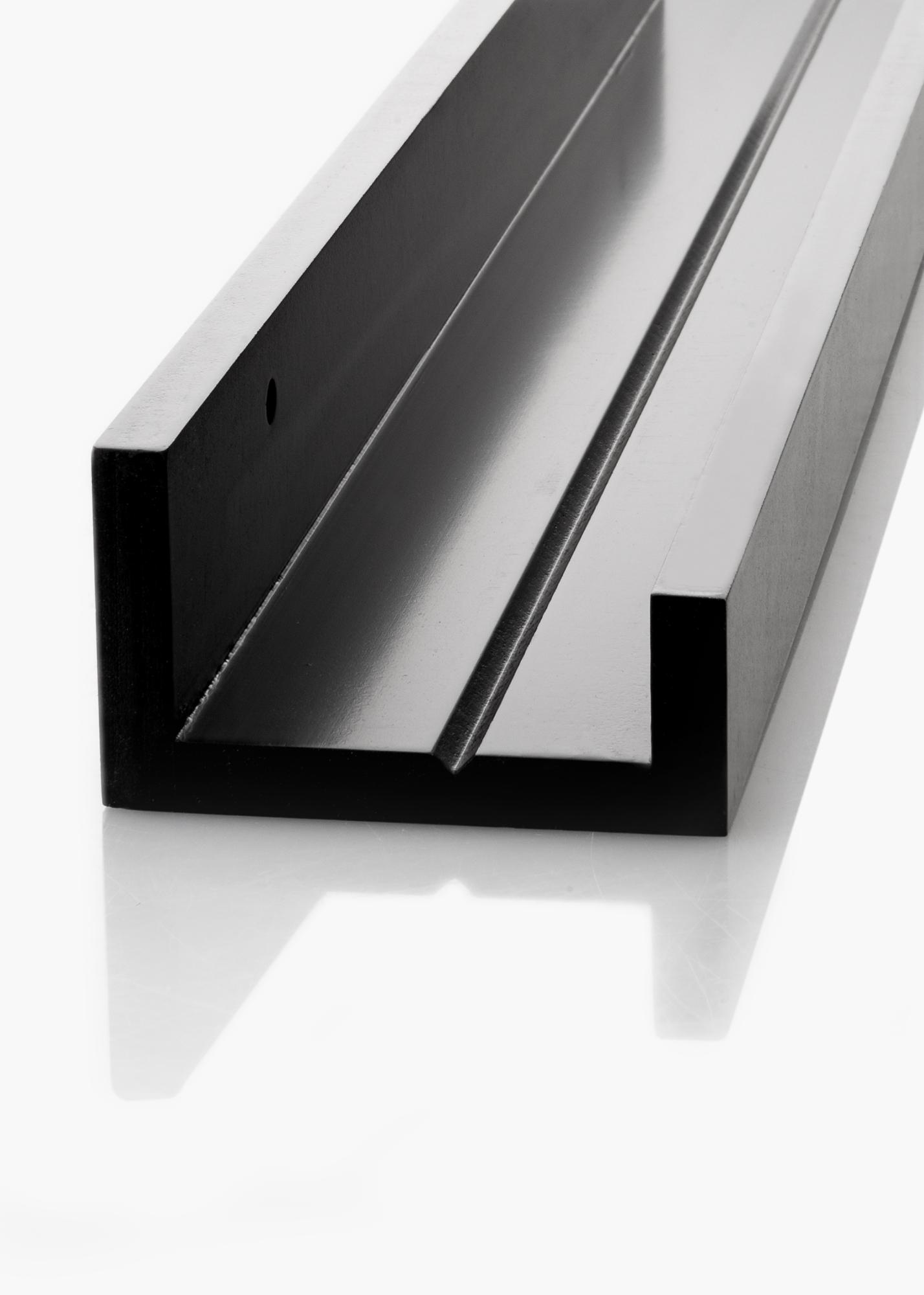 Cette tablette pour cadre noire est disponible en plusieurs longueurs différentes et cette variante particulière a une longueur de 100 cm. Pour plus de simplicité, l'étagère a des trous pré-percés et des vis et chevilles appropriées sont incluses dans l'emballage.