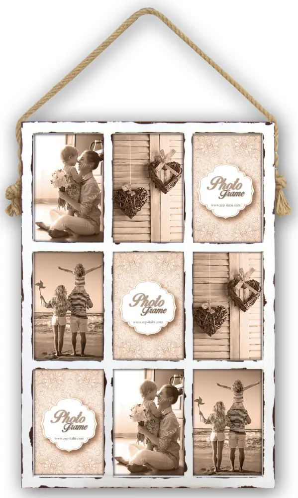 Un cadre collage moderne en blanc avec de l'espace pour 9 images. Commandez aujourd'hui et créez votre collage photo personnalisé dès ce week-end !
