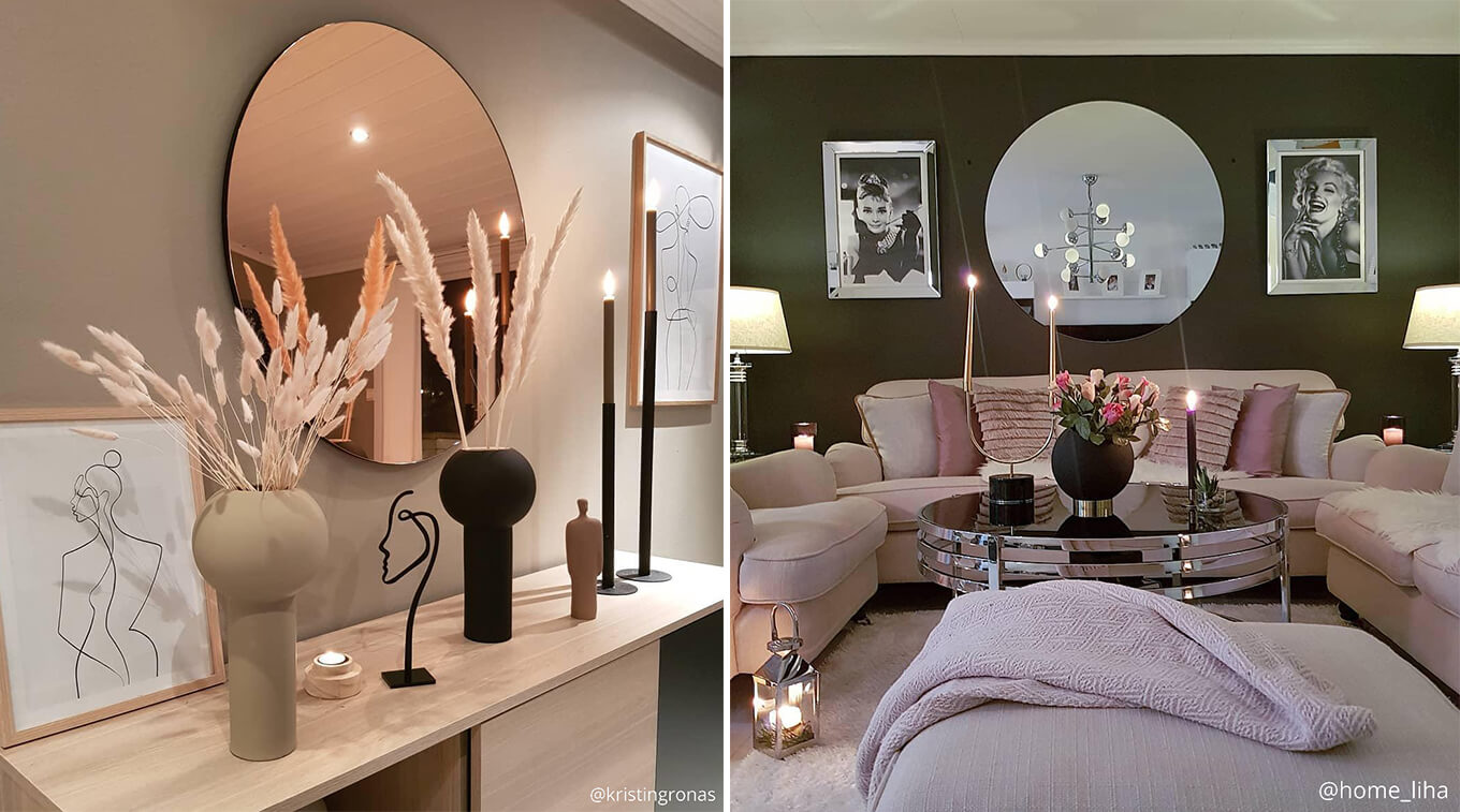 Les miroirs ronds se sont depuis longtemps déplacés de la salle de bain aux autres pièces de la maison. Aujourd'hui, nous voyons des miroirs ronds dans les chambres et les salons, ainsi que dans les halls d'entrée et les salles à manger. Et il y a vraiment quelque chose de spécial avec ces miroirs ronds. De la douceur et de l'élégance. Sans parler des propriétés magiques que possèdent les miroirs en général – et peut-être les miroirs ronds en particulier. Les miroirs créent de l'espace et de la lumière et peuvent refléter à la fois vous-même et votre personnalité. Voici un peu d'inspiration sympa sur le thème miroirs ronds !