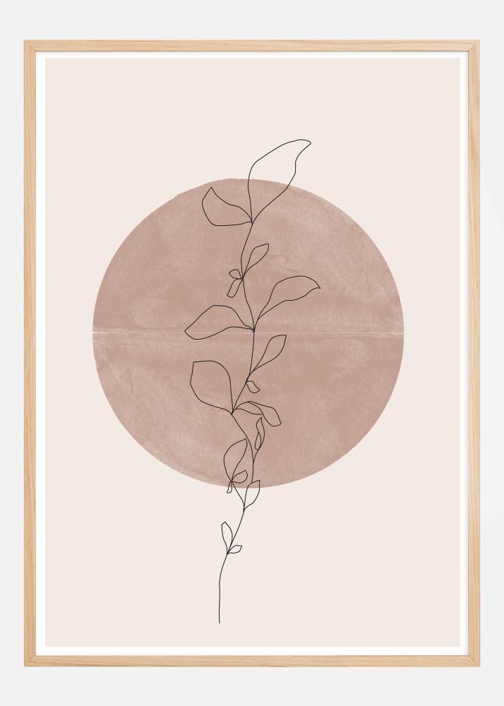 Cette affiche représente une illustration délicate en ligne d'une branche en floraison, dont les contours se détachent contre un grand cercle peint dans une teinte apaisante et terreuse. Le contraste entre le motif floral minimaliste et la couleur de fond puissante crée une dynamique intéressante qui est à la fois apaisante et esthétiquement agréable.