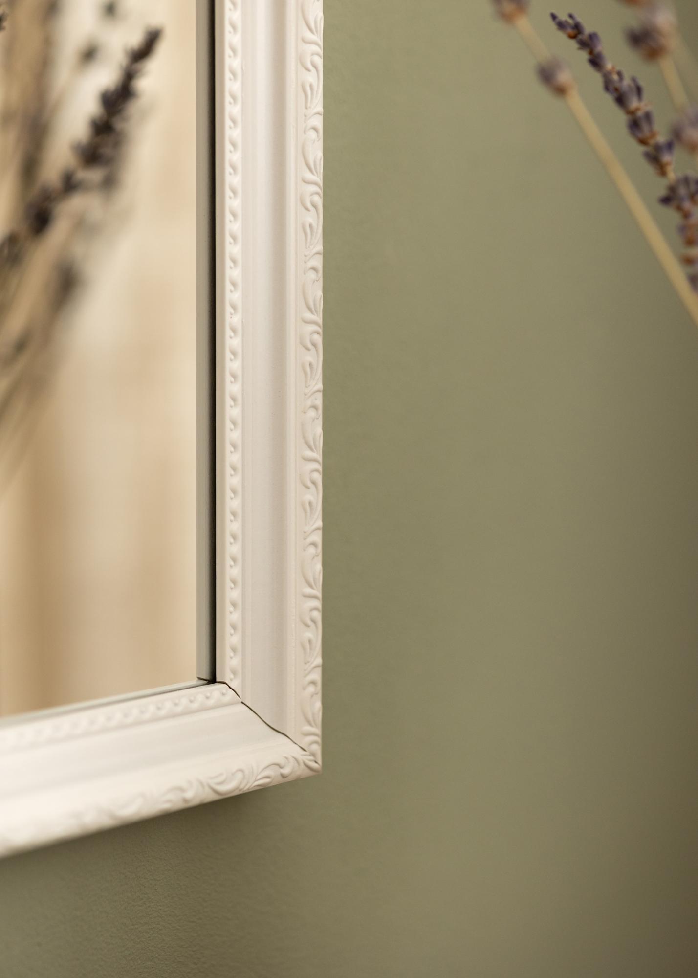 Un miroir blanc deviendra un détail rafraîchissant dans n'importe quel intérieur, et ce modèle apportera également beaucoup d'élégance ! Le miroir est conçu en composite et il est doté d'un verre réfléchissant non teinté traditionnel. Le cadre d'une largeur de 25 mm a un profil joliment ornementé, ce qui rend l'ensemble très stylisé.