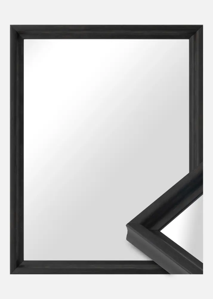 Cadre de miroir traditionnel de couleur marron noir plus proche du noir que du marron. Un excellent choix lorsque vous recherchez un miroir sur mesure dans une teinte sombre sur lequel ressort la structure du bois et qui rend le miroir plus vivant par rapport à un profil entièrement noir.