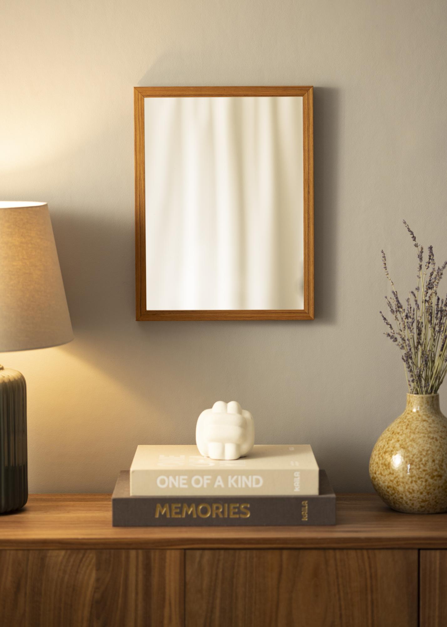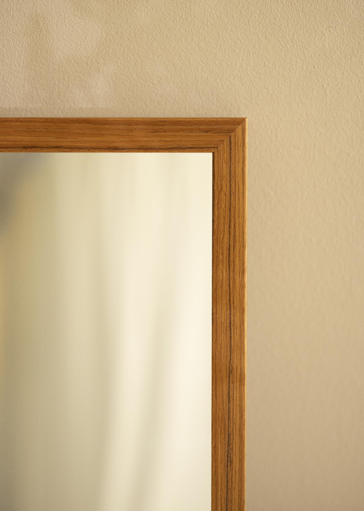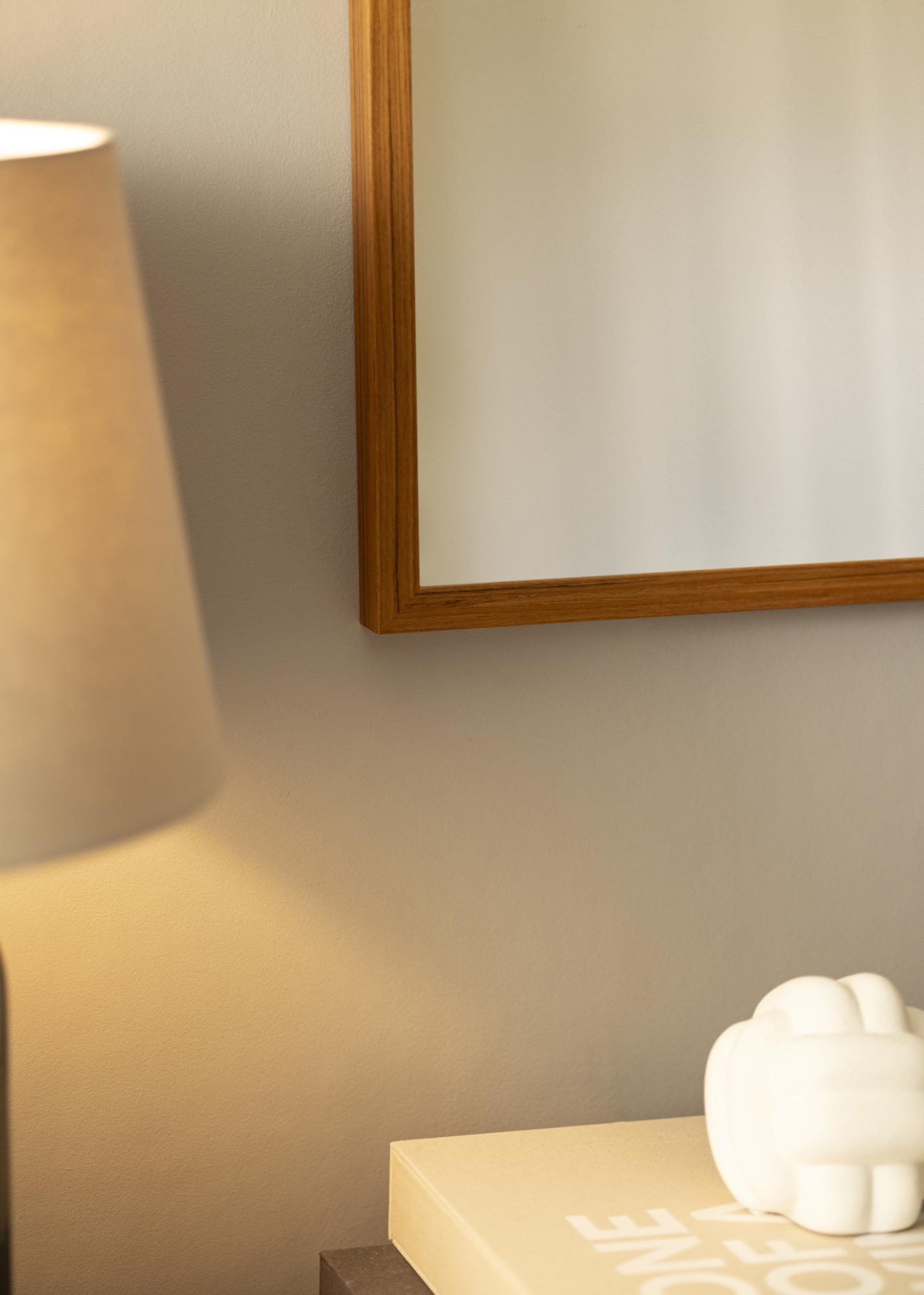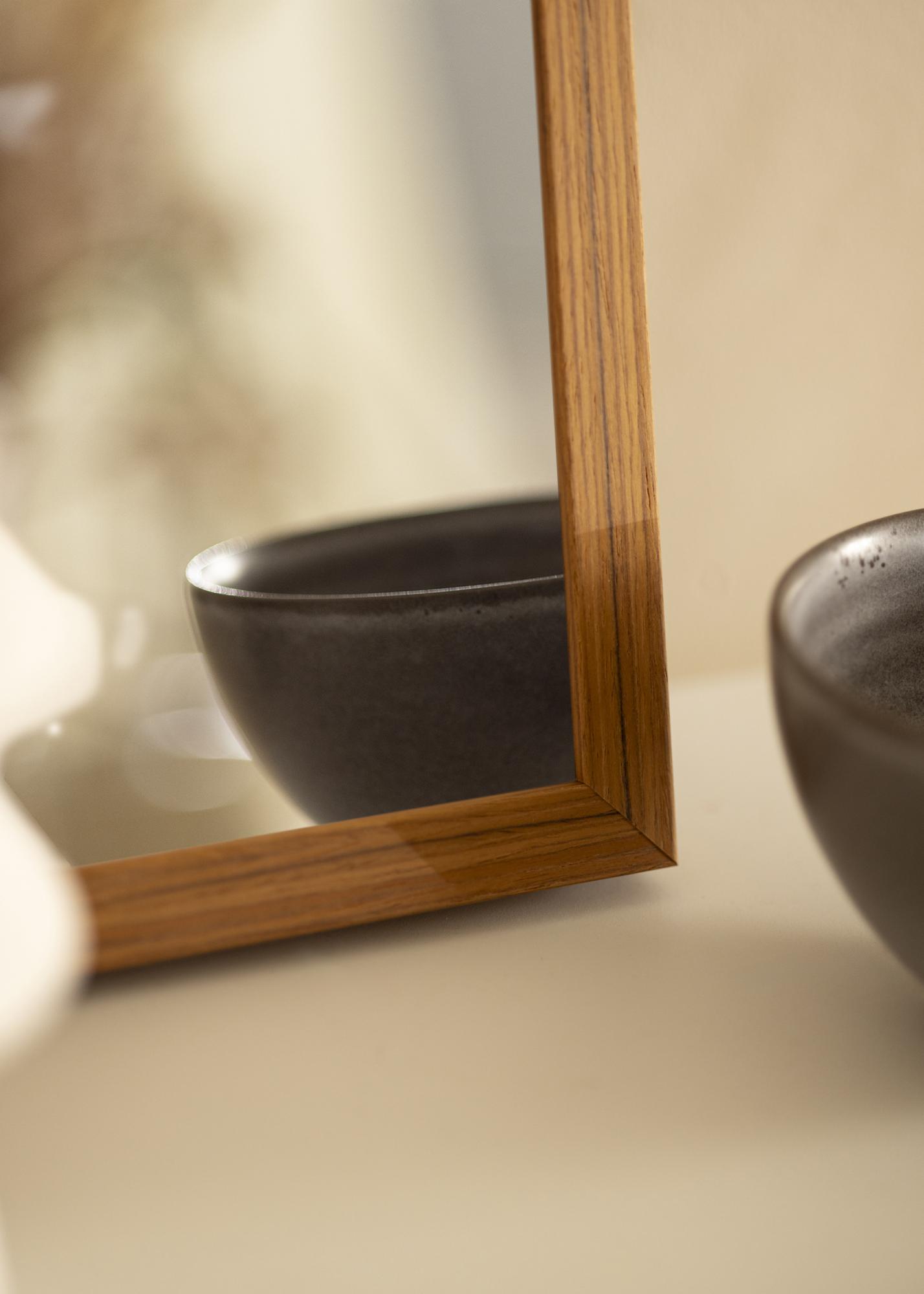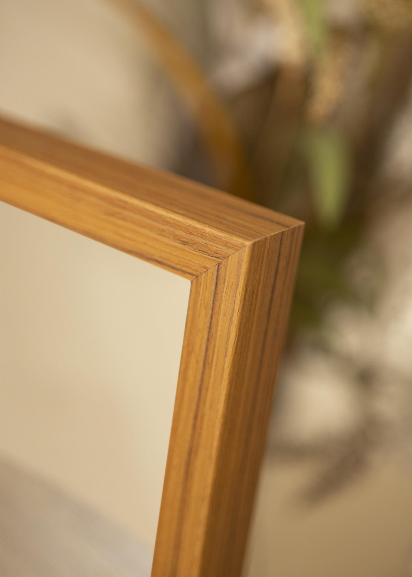 Avez-vous retrouvé le goût des beaux meubles en teck ou venez-vous d'en découvrir le charme ? Cet élégant miroir en teck apportera une touche rétro cosy à votre intérieur. Il sera magnifique à côté d'un autre détail de décoration d'intérieur en teck, mais vous pouvez tout aussi bien le placer au-dessus de votre évier pour le faire ressortir. Comme il est fabriqué par du personnel qualifié dans notre propre atelier de cadres, vous pouvez vous attendre à un produit de haute qualité !