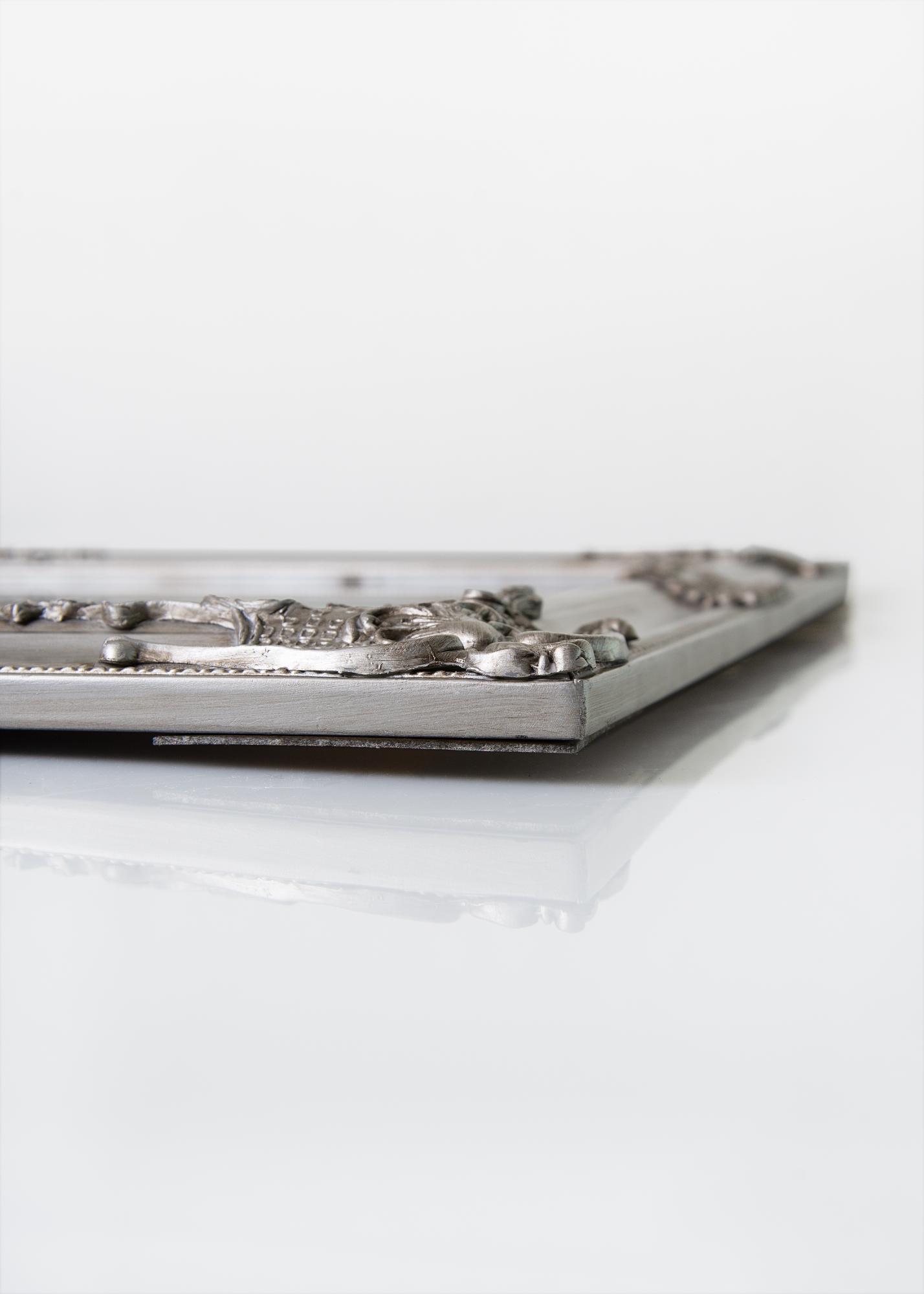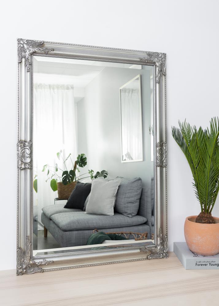 La série de miroirs Bologna Argent a un design latin paré d'une riche décoration dans les coins et au centre des côtés du cadre. Le cadre de ce miroir est légèrement plus étroit que celui de nombreux autres miroirs de ce style. Ce cadre est en bois et est orné d'une décoration qui a été coulée dans du plâtre avant d'être appliquée sur le cadre. Idéal comme miroir de salle de bain.