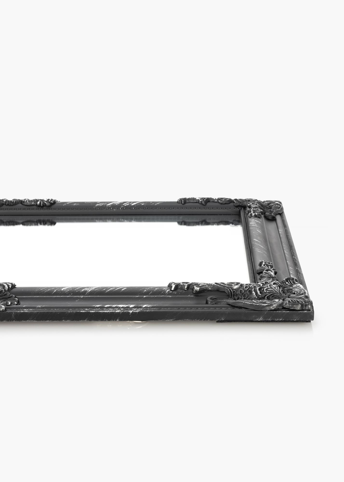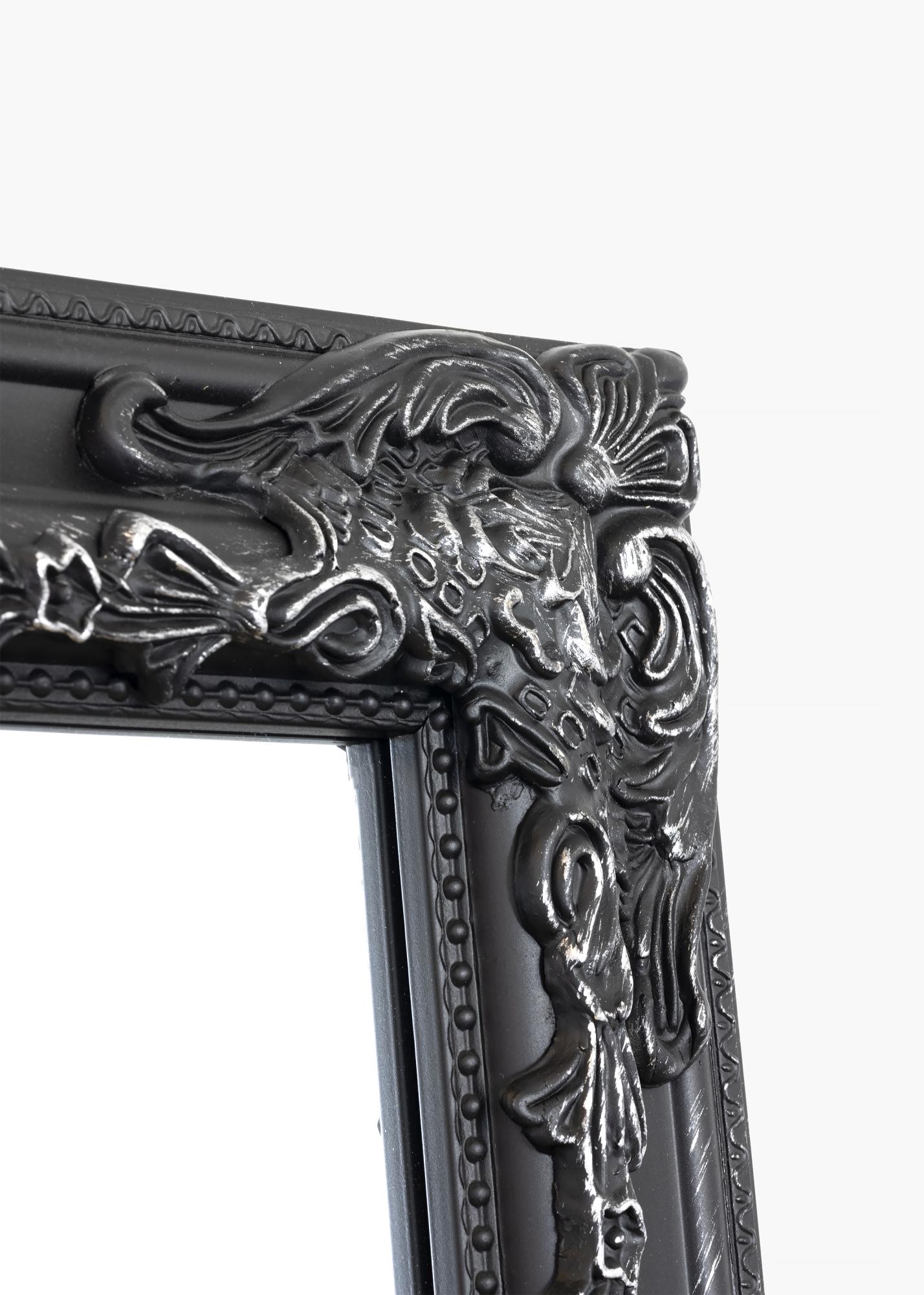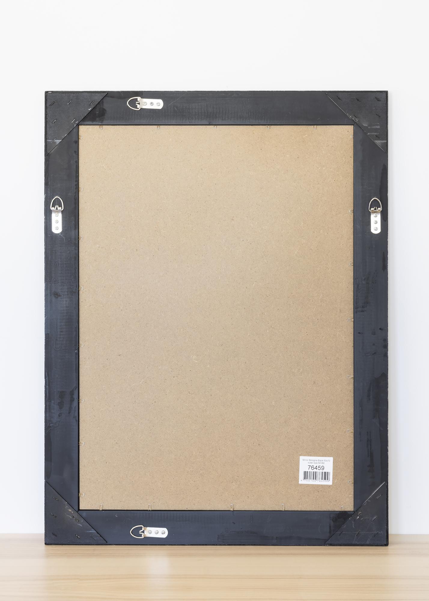 La série de miroirs Bologna Noir a un design latin paré d'une riche décoration dans les coins et au centre des côtés du cadre. Le cadre de ce miroir est légèrement plus étroit que celui de nombreux autres miroirs de ce style. Ce cadre est en bois et est orné d'une décoration qui a été coulée dans du plâtre avant d'être appliquée sur le cadre. Idéal comme miroir de salle de bain.