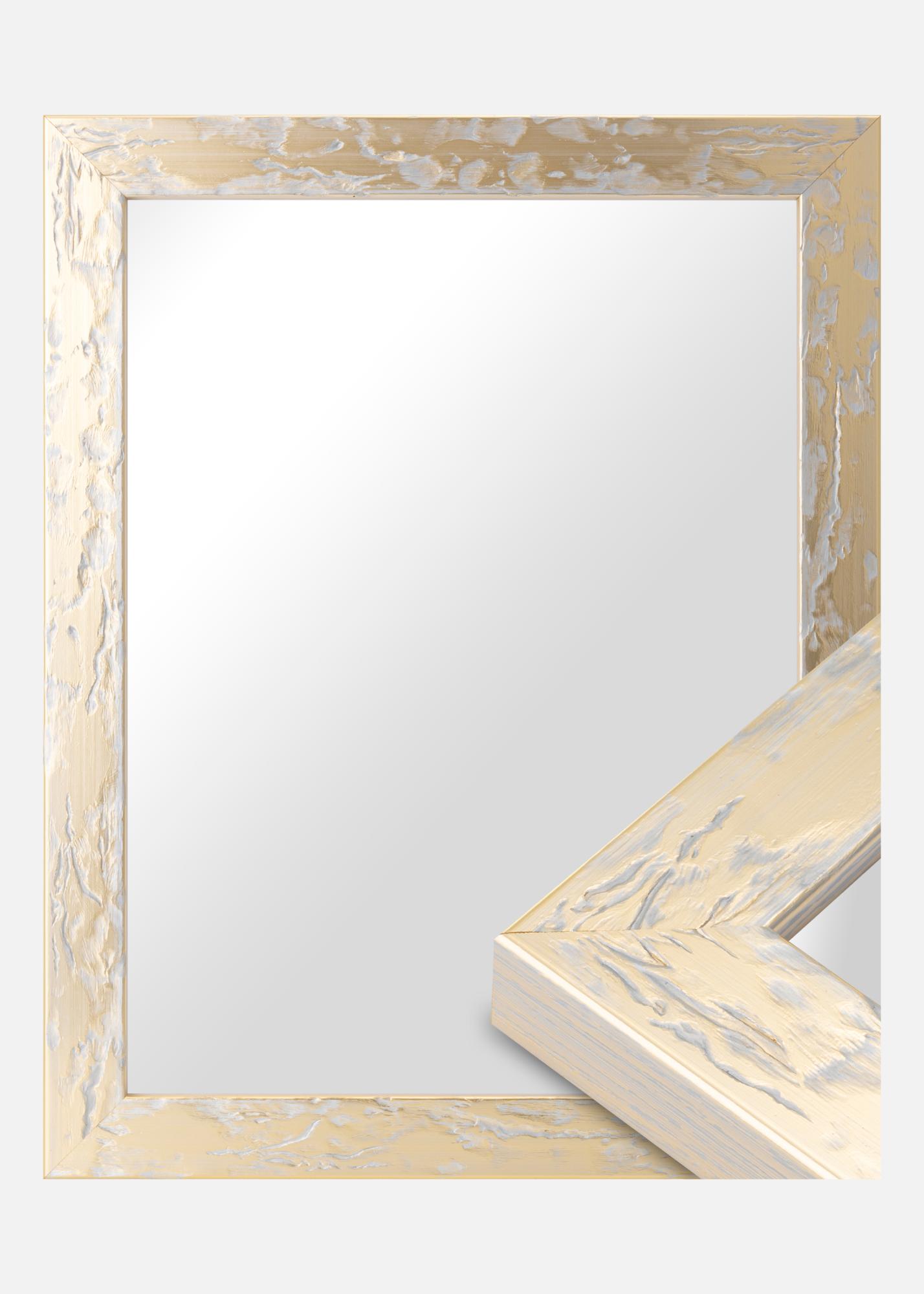 Freja est un superbe miroir doré avec une surface inégale veinée et avec des variations argentées. Avec son association de couleurs argent et or, Freja dispose d'une teinte de couleur agréable qui tire plus vers l'argent que l'or. Avec sa profondeur de profil de 30mm, Freja Or ressort un peu du mur, ce qui donne une jolie profondeur au miroir.