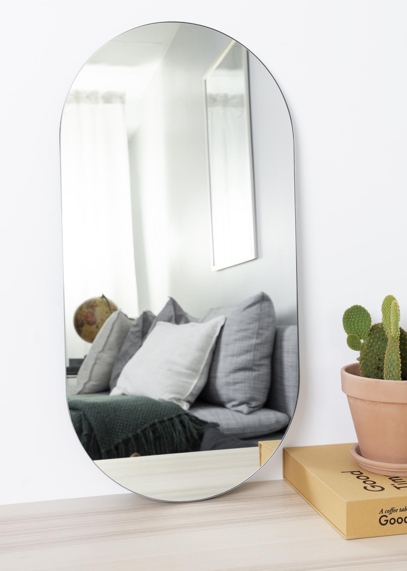 Miroir ovale élégant avec les dimensions 35x70 cm de House Doctor qui peut tout aussi facilement être suspendu verticalement et horizontalement. S'intègre parfaitement, par exemple, dans le hall d'entrée ou le vestiaire. Le miroir est certifié pour les pièces humides et peut donc également être utilisé dans la salle de bain.