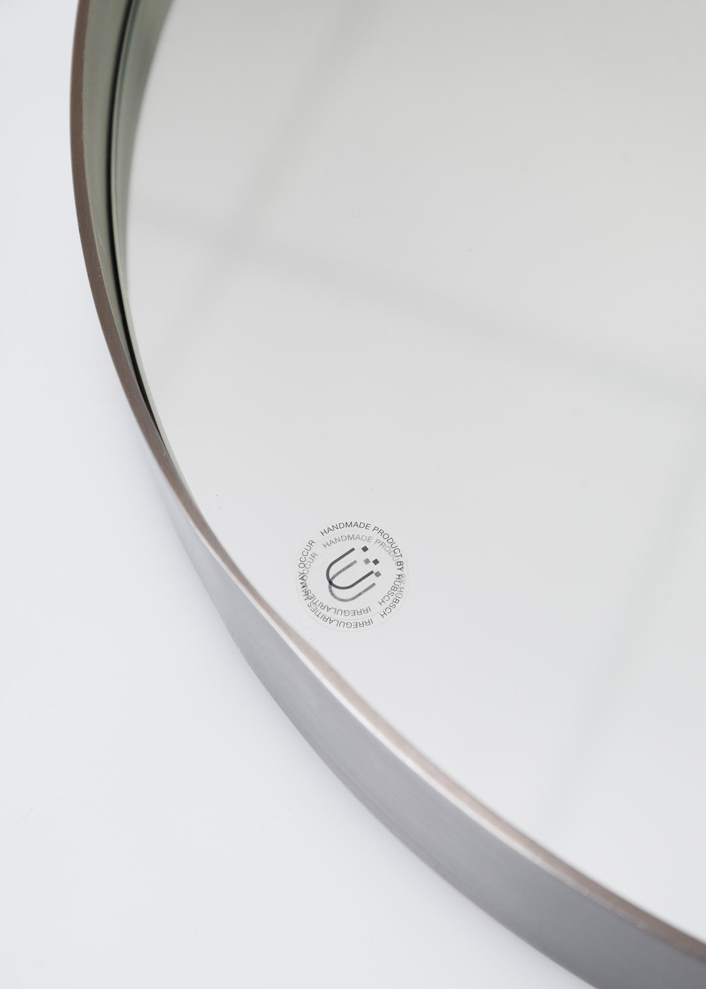 Ce miroir rond et ravissant vient de la marque danoise Hübsch. Le cadre en métal fin donne au miroir une apparence épurée, tandis que le bord haut apporte un effet intéressant au miroir.