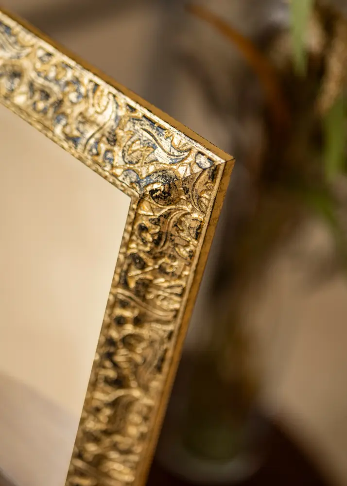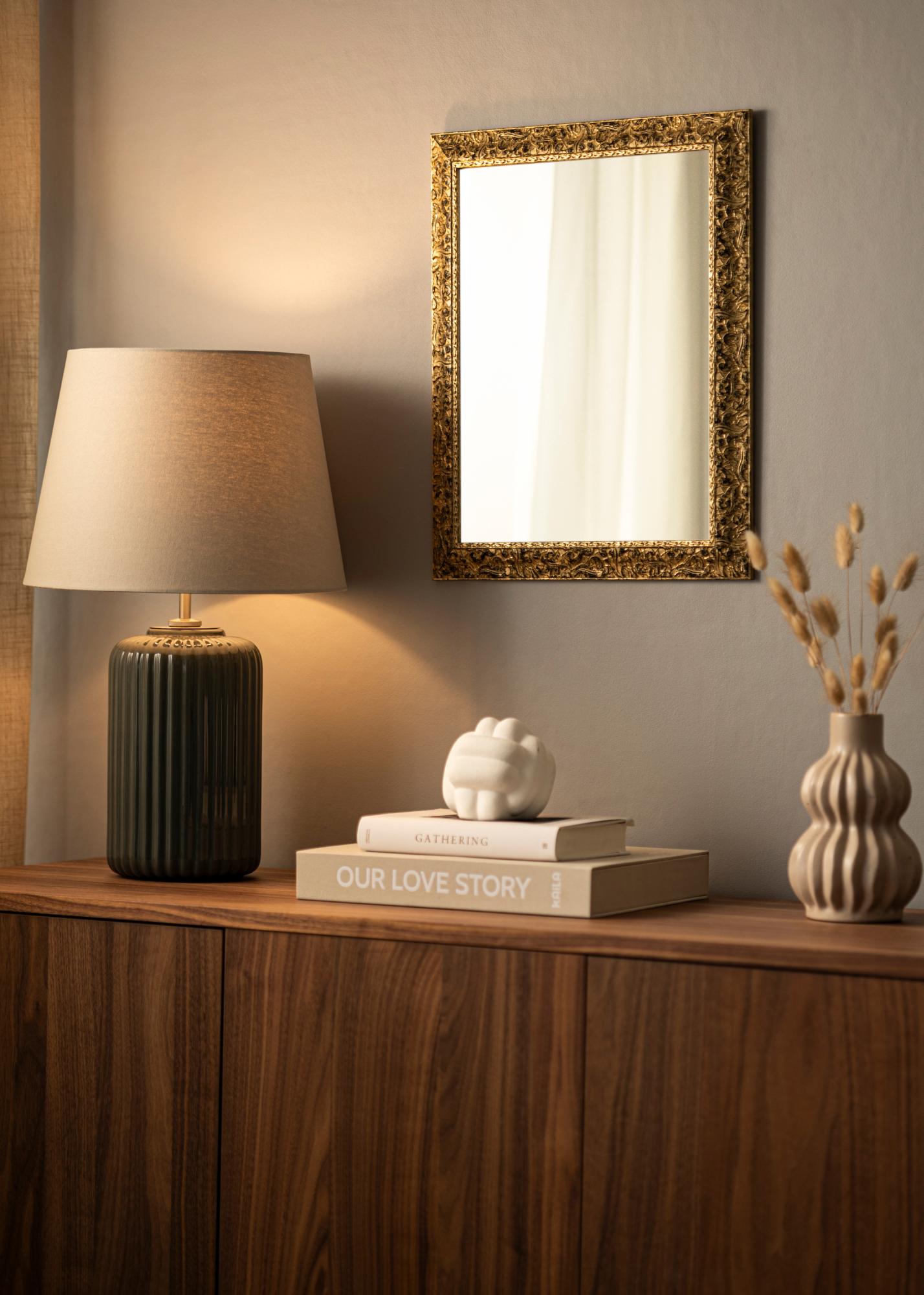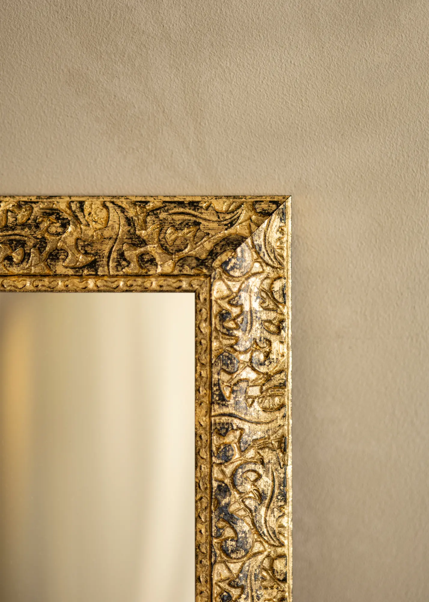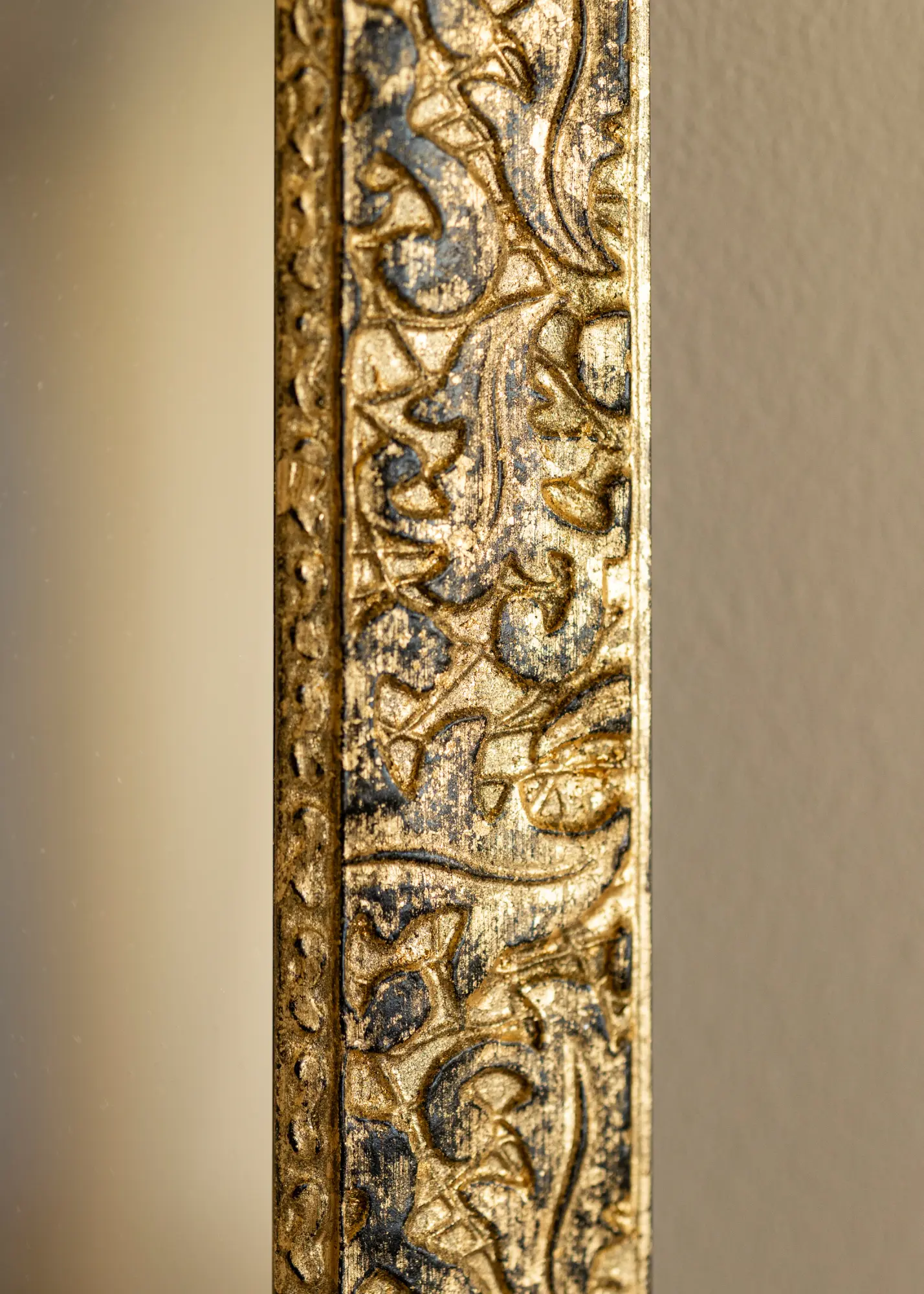 "Ralph Or" est un beau miroir de la plus haute qualité conçu en Italie. Avec son profil richement décoré, c'est un superbe miroir qui s'intègre aussi bien dans la salle de bain que dans le hall d'entrée.