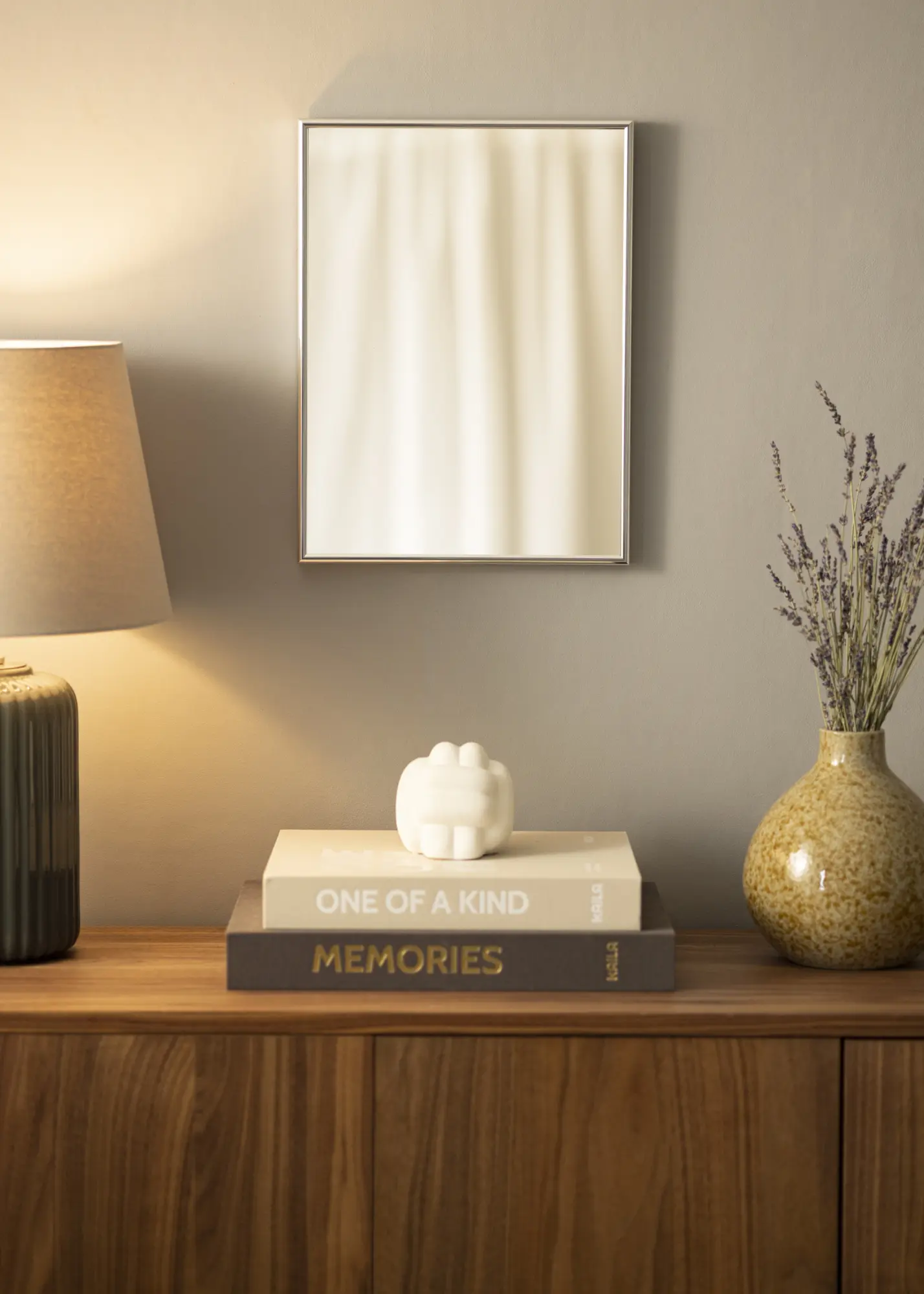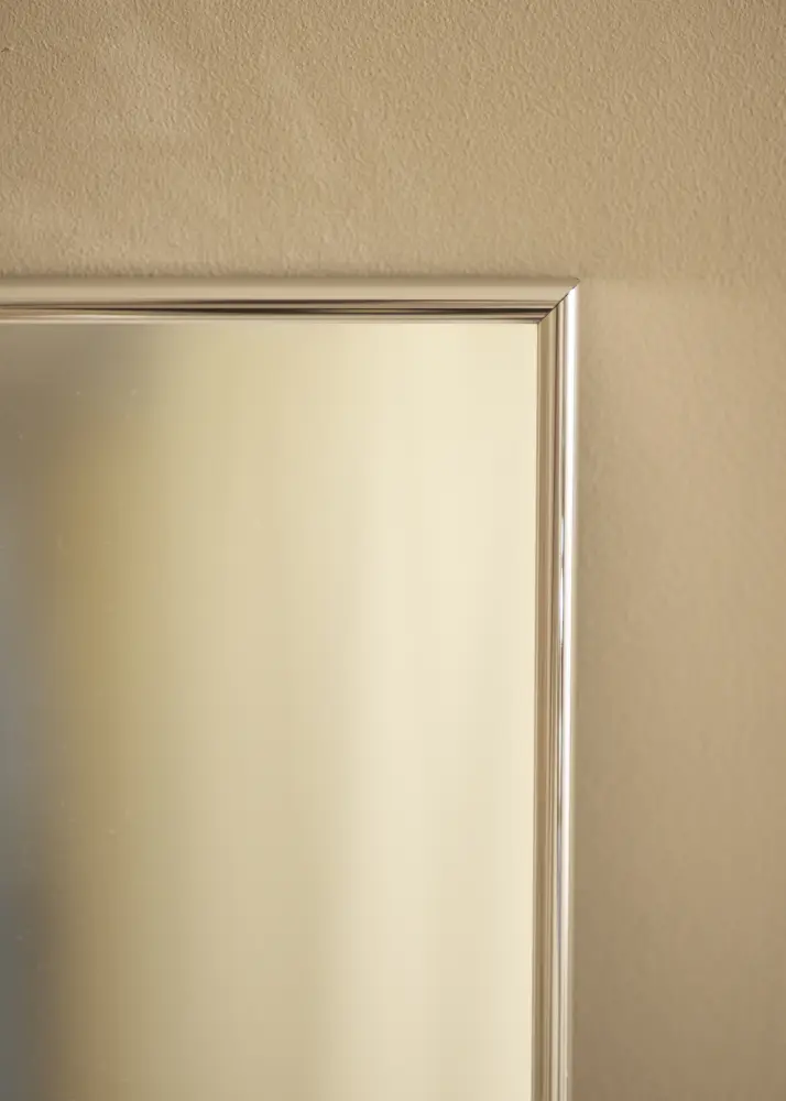 Sandhamn donne à votre miroir un encadrement exclusif avec son profil brossé de couleur argent hautement brillant d'une profondeur de 26 mm, ce qui fait que votre miroir ressort un peu du mur.