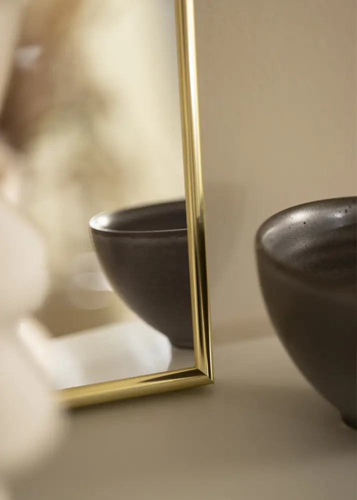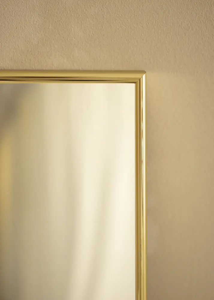 Sandhamn donne à votre miroir un encadrement exclusif avec son profil brossé de couleur or hautement brillant d'une profondeur de 26 mm, ce qui fait que votre miroir ressort un peu du mur.