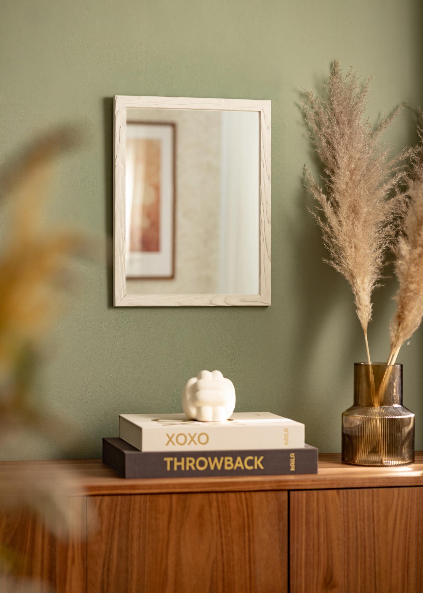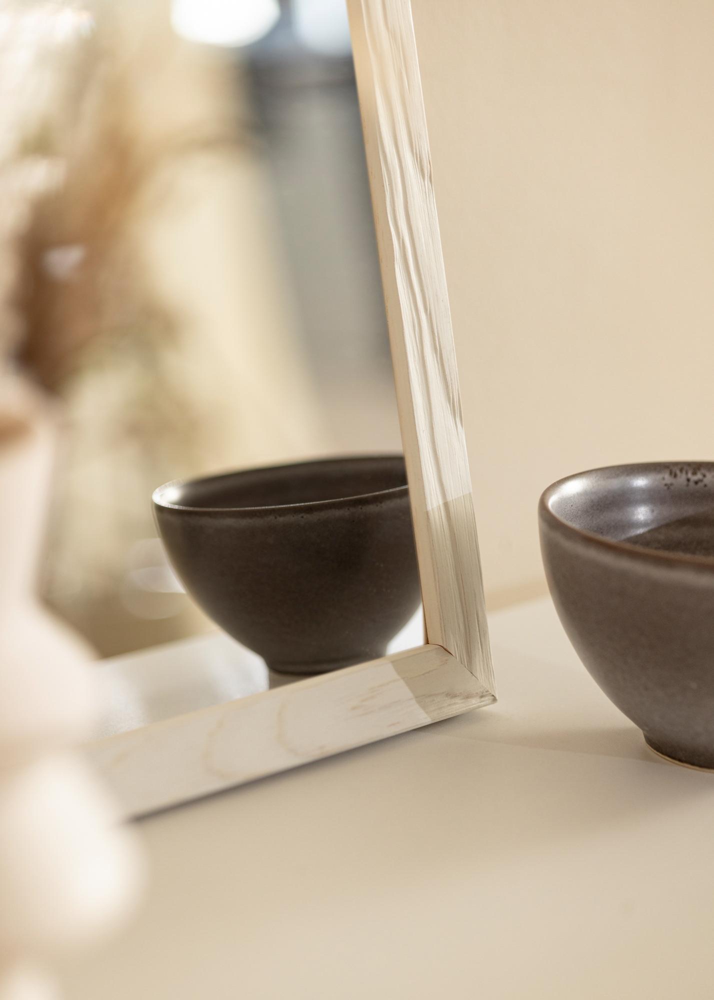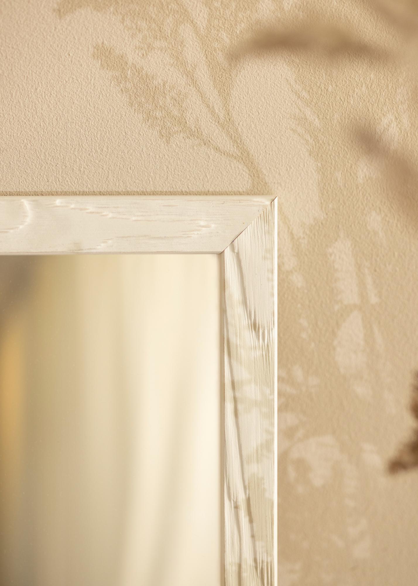 Rehaussez un mur de la salle de bain, du couloir ou du salon en plaçant ce miroir élégant sur le mur. Le miroir est d'un modèle simple et beau avec une bordure vernie en blanc. Comme il est fait selon vos mesures, vous pouvez être sûr qu'il s'adaptera exactement là où vous le souhaitez. Le design se fond aussi bien dans un intérieur moderne que dans un intérieur rustique ou romantique !