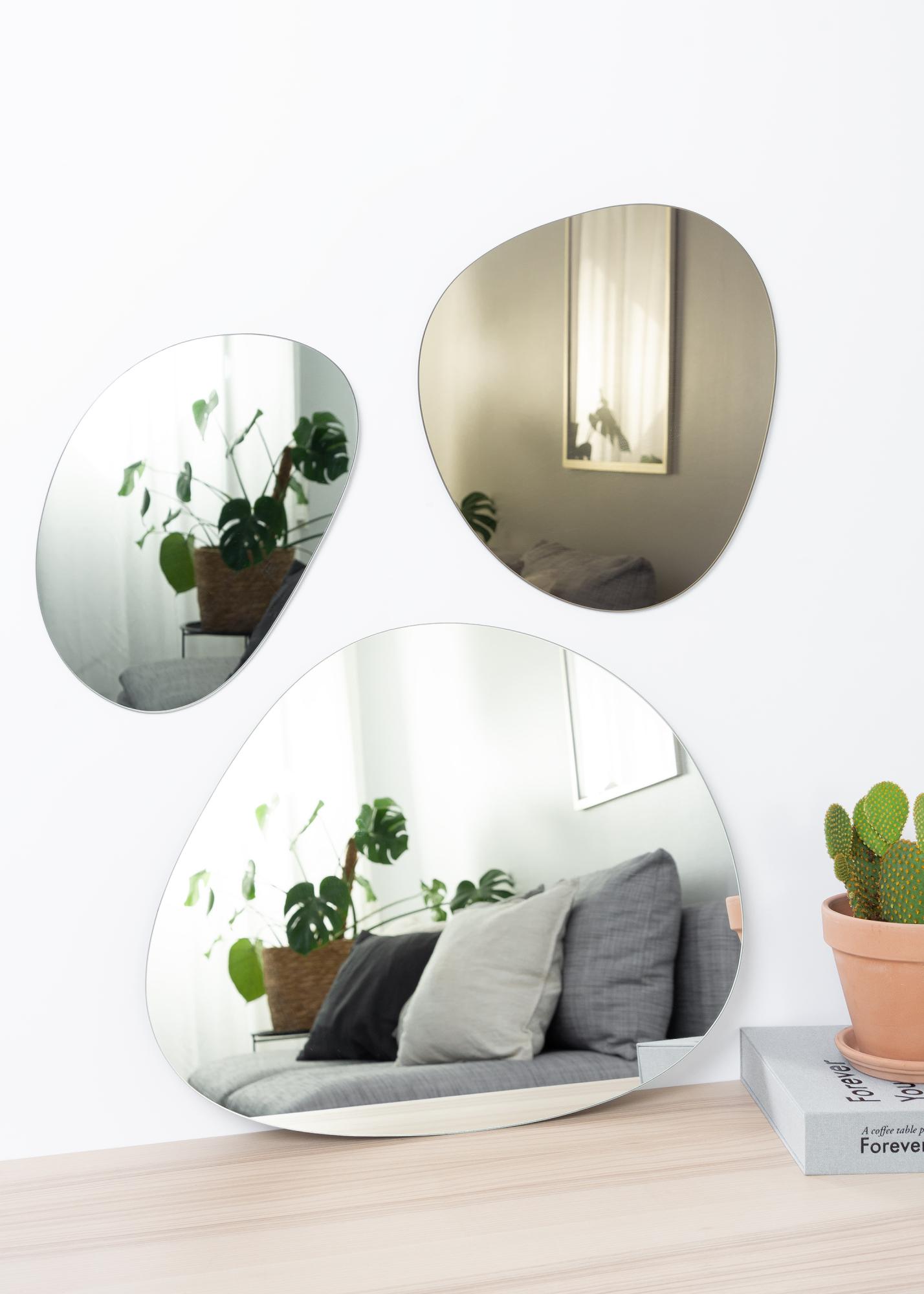 Voici un délicieux ensemble de miroirs avec 3 pièces en teinte grise. Ils sont de différentes tailles pour un rendu très sympathique lorsque vous les placerez sur le mur. Les différentes tailles de ces miroirs sont plaisantes les unes à côté des autres et s'adaptent très bien au mur, quelle que soit la taille de la pièce.