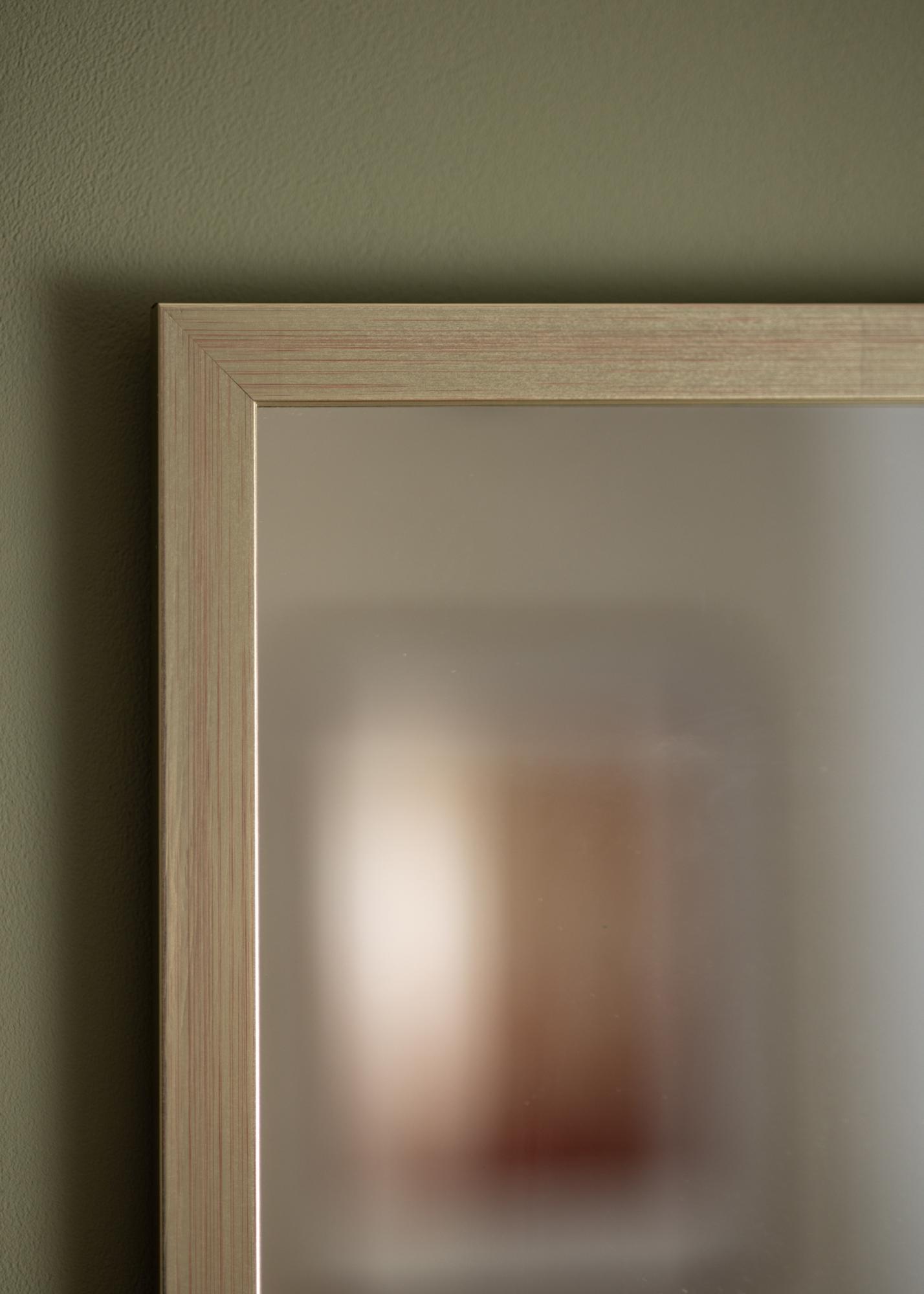Ce miroir est conçu en bois d'ayous, peint dans une belle couleur argentée. Le cadre fait 22 mm de largeur et a un profil droit, ce qui créé un ensemble dépouillé. Placez le miroir dans l'entrée, la chambre à coucher ou bien le salon et laissez le refléter la lumière des lampes et fenêtres d'une façon exquise.