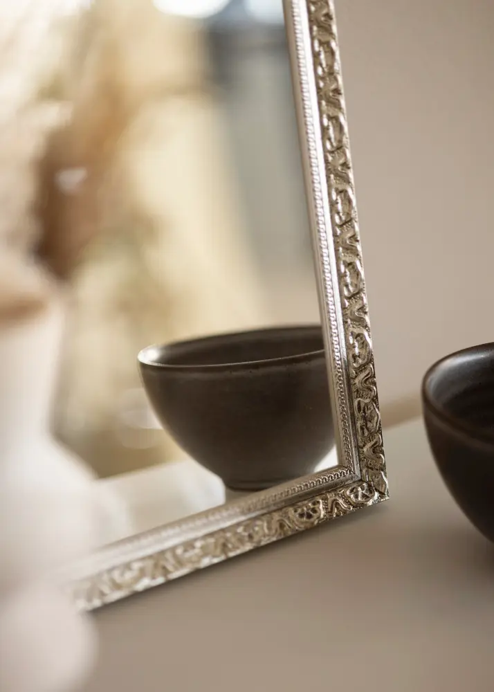 Beau miroir argenté d'inspiration rétro et de haute qualité avec un design exclusif fabriqué en Italie.