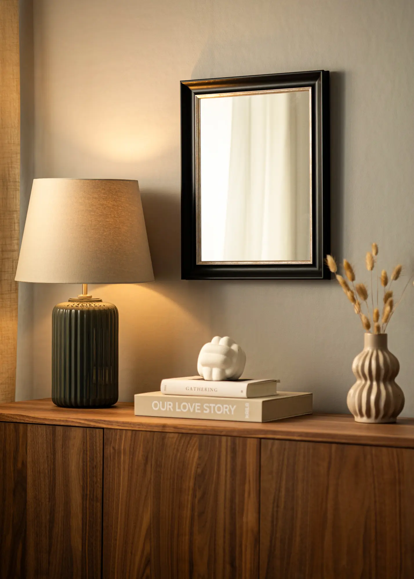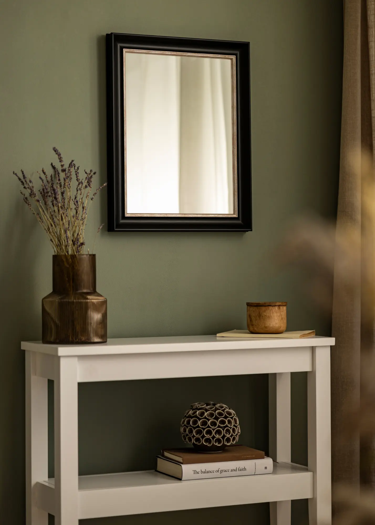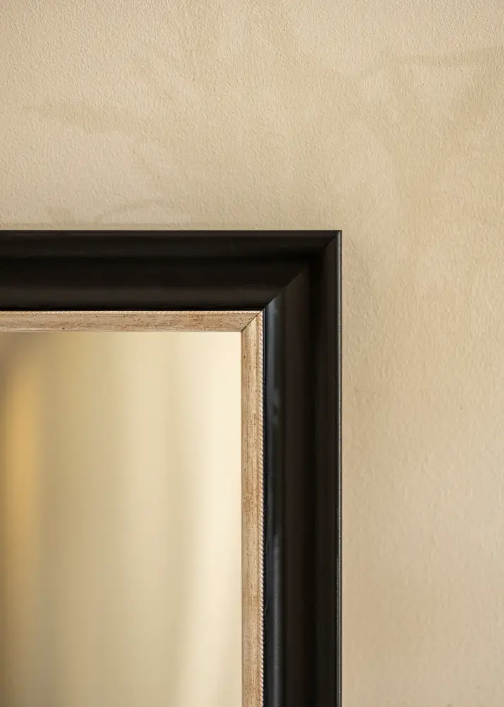 Miroir luxueux dans toutes les tailles avec un profil noir classique . Au plus près du motif se trouve un élégant bord argenté qui donne au miroir un éclat supplémentaire.