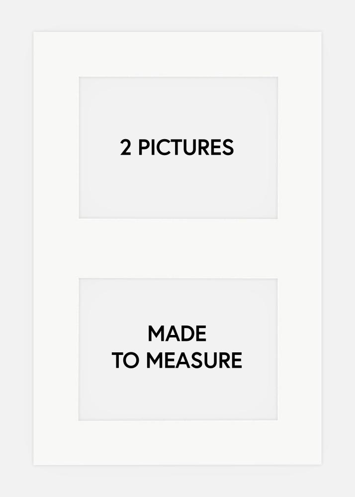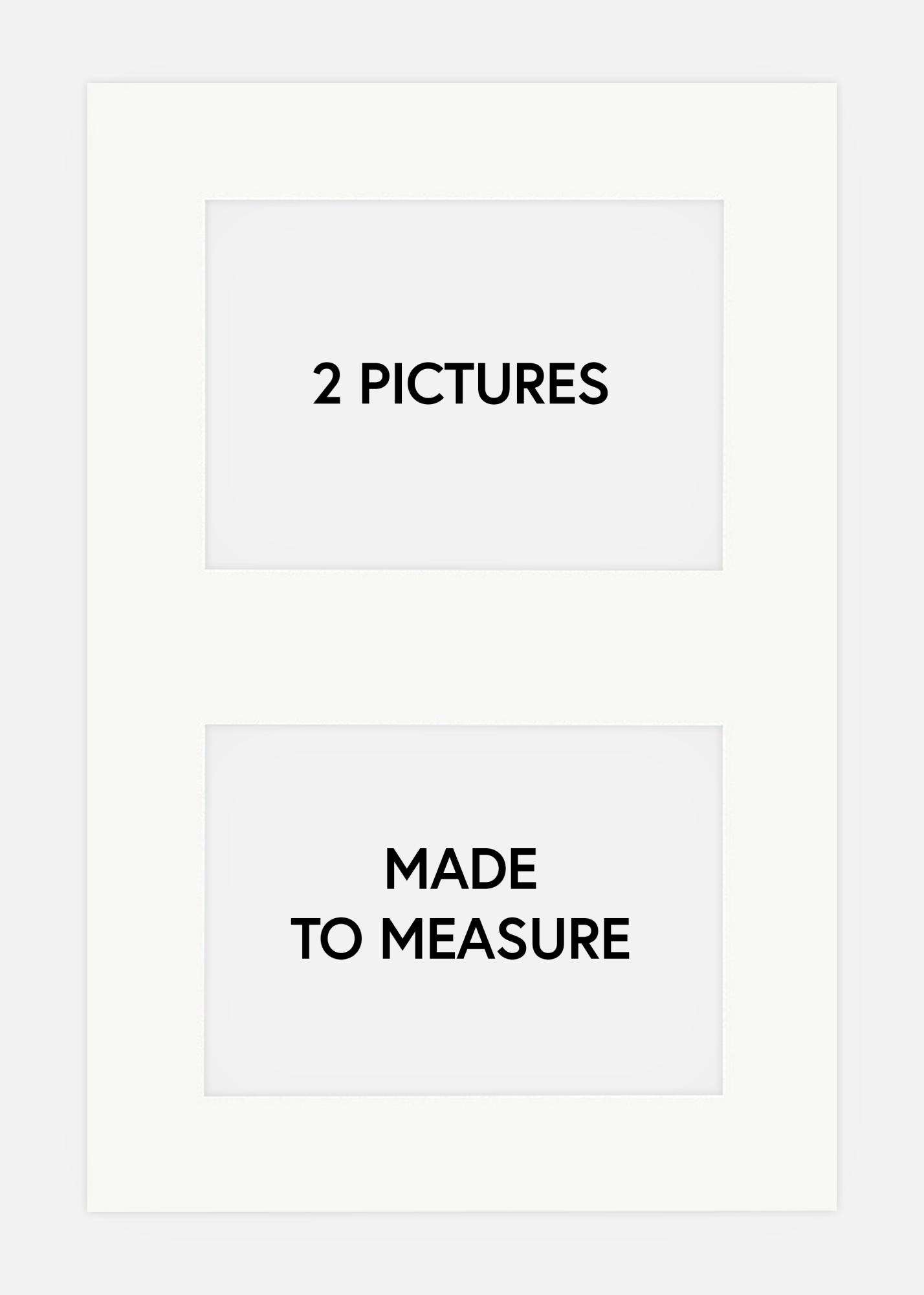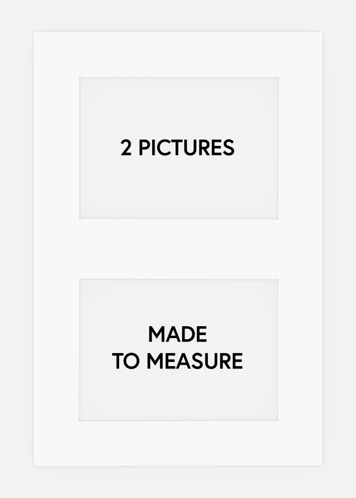 Vous pouvez ici commander facilement des passe-partout de collage avec de la place pour 2 photos. Pour commander, entrez les dimensions extérieures du passe-partout (qui doivent être les mêmes dimensions que le cadre que vous allez utiliser), puis entrez les dimensions intérieures souhaitées, qui doivent toujours être 1 cm plus petites que les images que vous allez utiliser. Vous ne pouvez commander ici que si vous avez deux photos de la même taille ; si vous souhaitez un passe-partout de collage plus avancé, vous devez contacter notre service client pour votre commande.