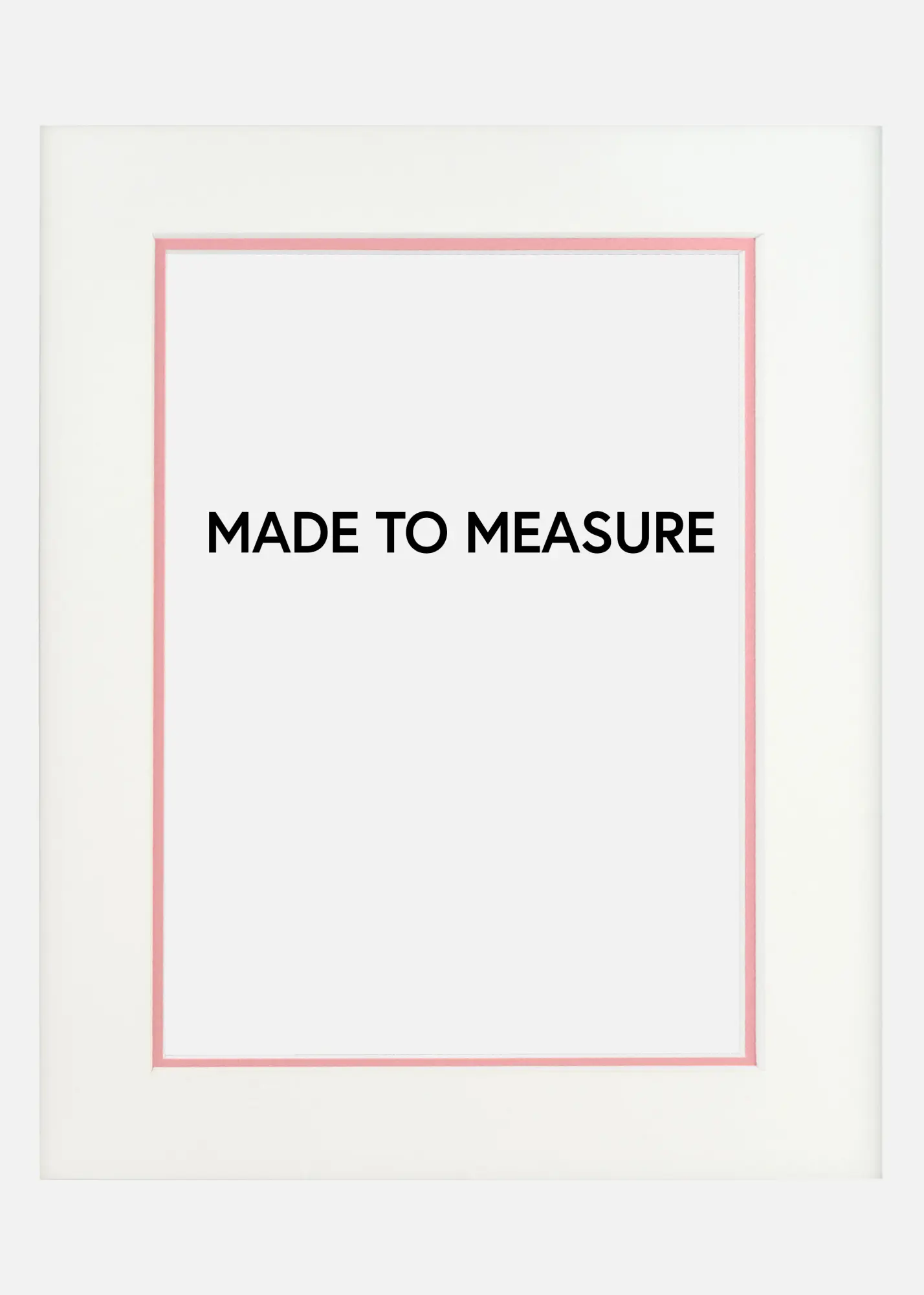 Passe-partout sur mesure à deux couches avec un passe-partout blanc comme base et une couche inférieure de couleur rose clair qui donne une bordure colorée de 5 mm autour de l'image. Parfait lorsque vous souhaitez un encadrement spectaculaire qui met en valeur votre image et donne une profondeur supplémentaire au motif. Tous nos passe-partout ont des bordures nettement coupées à un angle de 45 degrés, ce qui donne un encadrement sérieux et professionnel à vos photos.