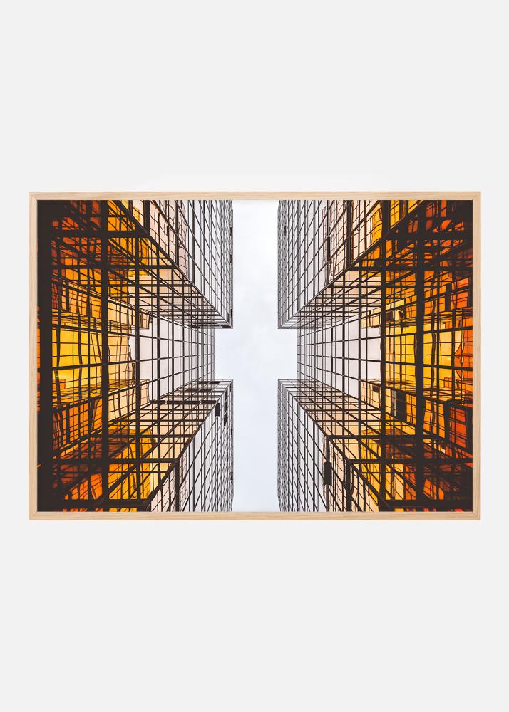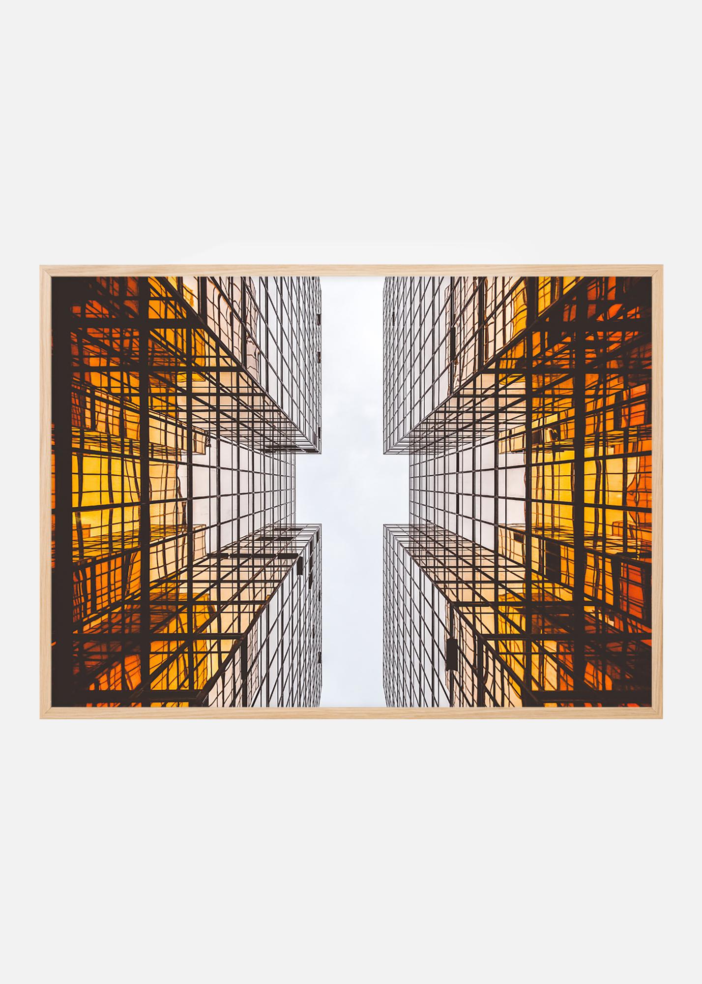 Affiche avec une architecture futuriste qui, avec ses lignes graphiques, crée un motif excitant. Les couleurs se fondent du orange profond à la base du bâtiment vers le ciel blanc. Le poster s'adapte bien avec un cadre plus fin dans un décor minimaliste comme dans d'autres styles avec des éléments graphiques. Associez-le volontiers avec d'autres tableaux sur des architectures fascinantes ou des environnements urbains.