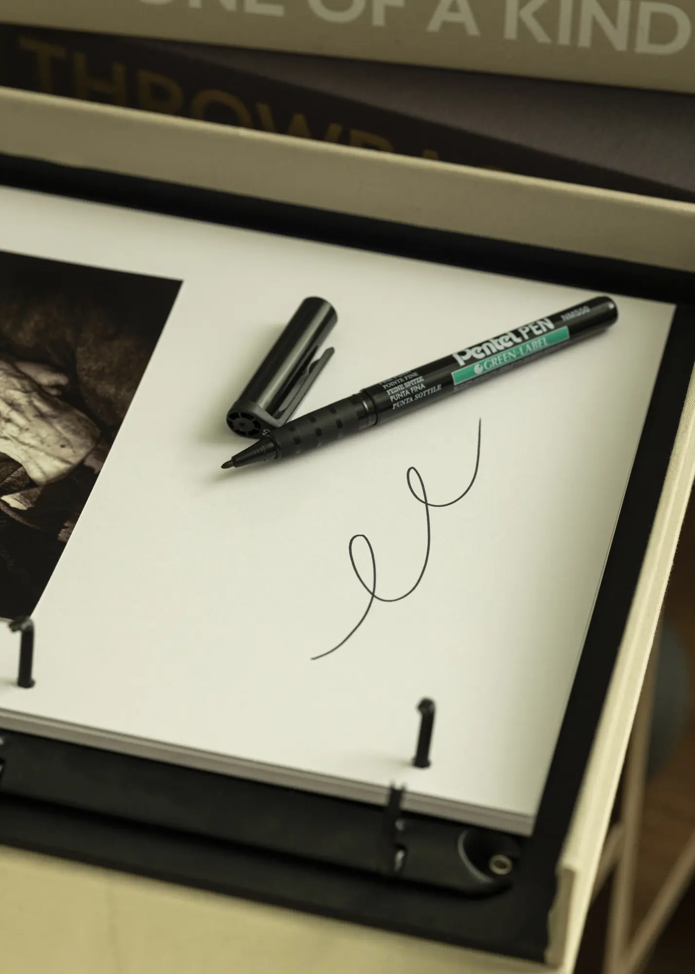 Ugs:Stylo noir de la marque Pentel qui se fixe sur la plupart des surfaces. Ce stylo a une largeur de pointe de 0,8 mm