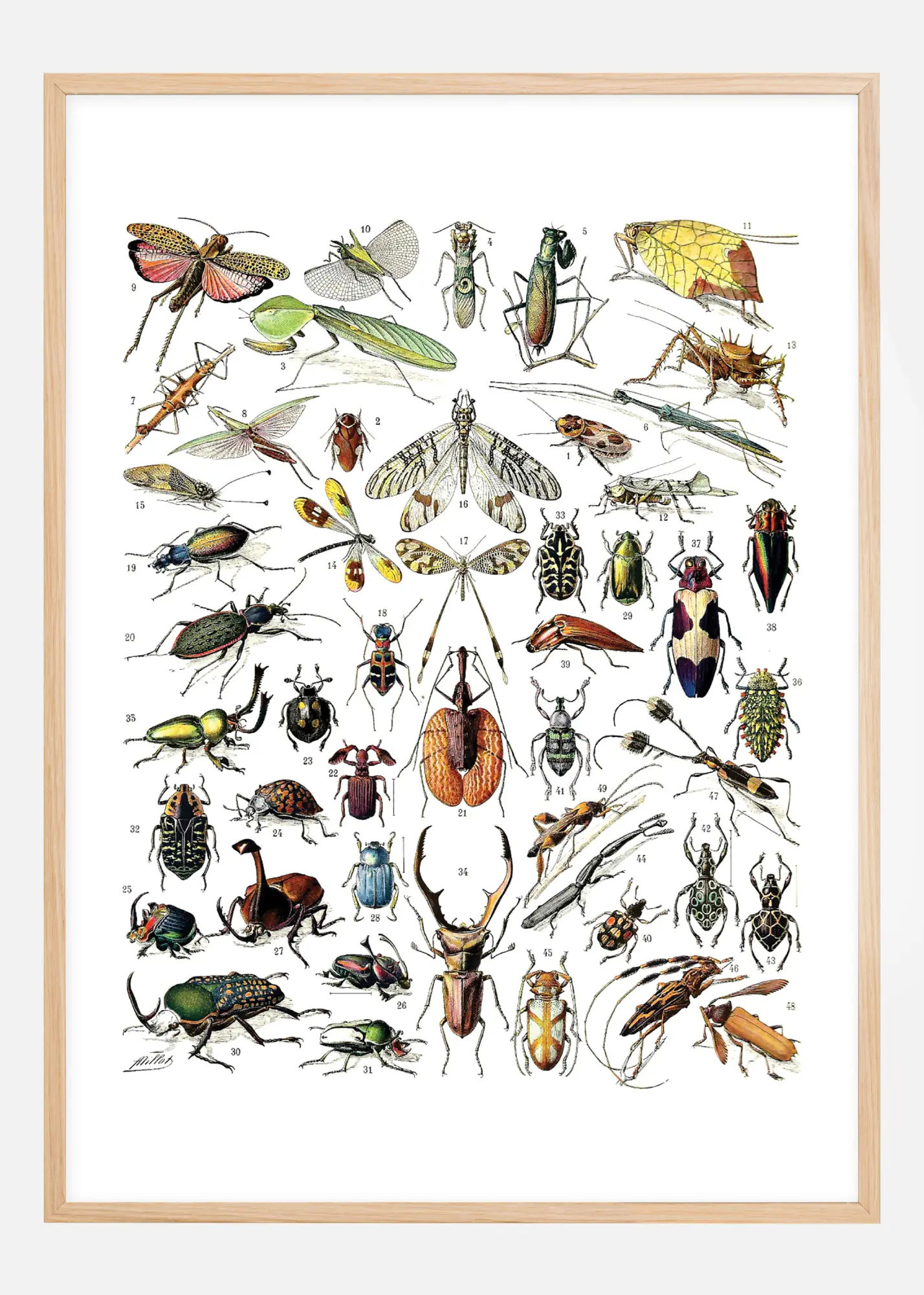Apportez la nature dans votre maison en accrochant cette magnifique affiche scolaire ! Le motif provient d'un vieux livre d'entomologie et il dépeint un grand groupe d'insectes colorés. Comme l'affiche est disponible en plusieurs tailles, vous trouverez facilement celle qui convient à votre usage. N'hésitez pas à la compléter avec un cadre élégant de notre large sélection !