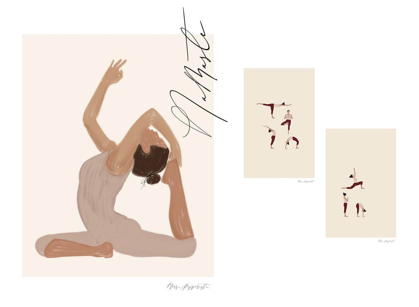 Posters illustrant des positions de yogaÀ partir de la gauche : 1. Yoga - White // 2. Yoga - Navy // 3. Yoga - B&W