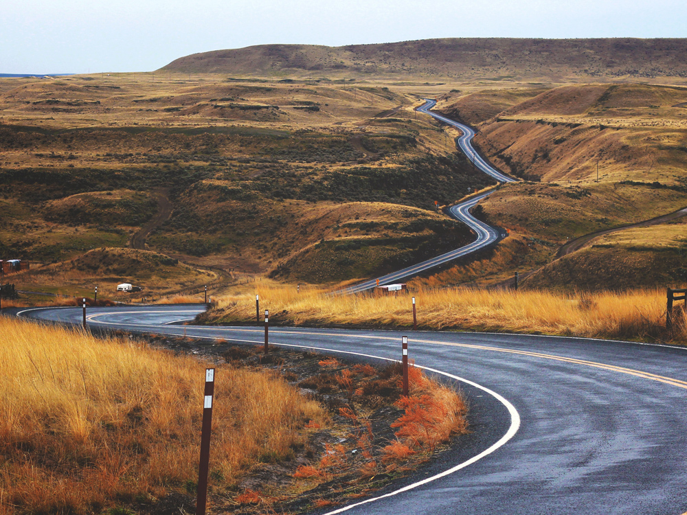 Poster avec une route en asphalte qui serpente à travers un paysage de steppe brûlé par le soleil. Les nuances de jaune-brun de l'herbe contre la surface froide de l'asphalte qui se fraye un chemin à travers le paysage ouvert attirent le regard dans l'image et suivent la route. Le poster convient bien dans un cadre minimaliste où le motif peut être pleinement apprécié et peut être facilement combiné avec d'autres tableaux pour créer un thème.