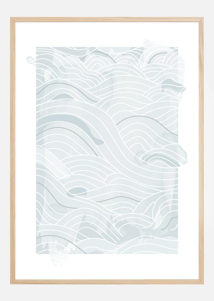 Une affiche d'océan avec des lignes abstraites bleues et des vagues sur un fond blanc. Différents tons de bleu d’épaisseurs de lignes se combinent pour créer ces vagues ondulantes sur la page. Laissez votre esprit vagabonder et laissez-vous emporter par ce doux motif océanique.
