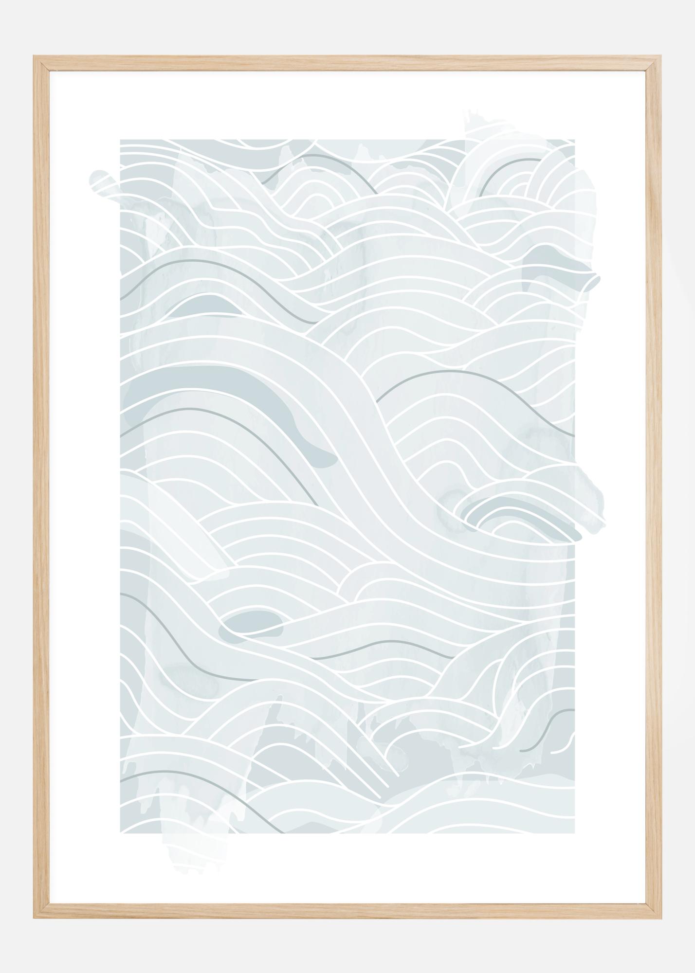 Une affiche d'océan avec des lignes abstraites bleues et des vagues sur un fond blanc. Différents tons de bleu d’épaisseurs de lignes se combinent pour créer ces vagues ondulantes sur la page. Laissez votre esprit vagabonder et laissez-vous emporter par ce doux motif océanique.