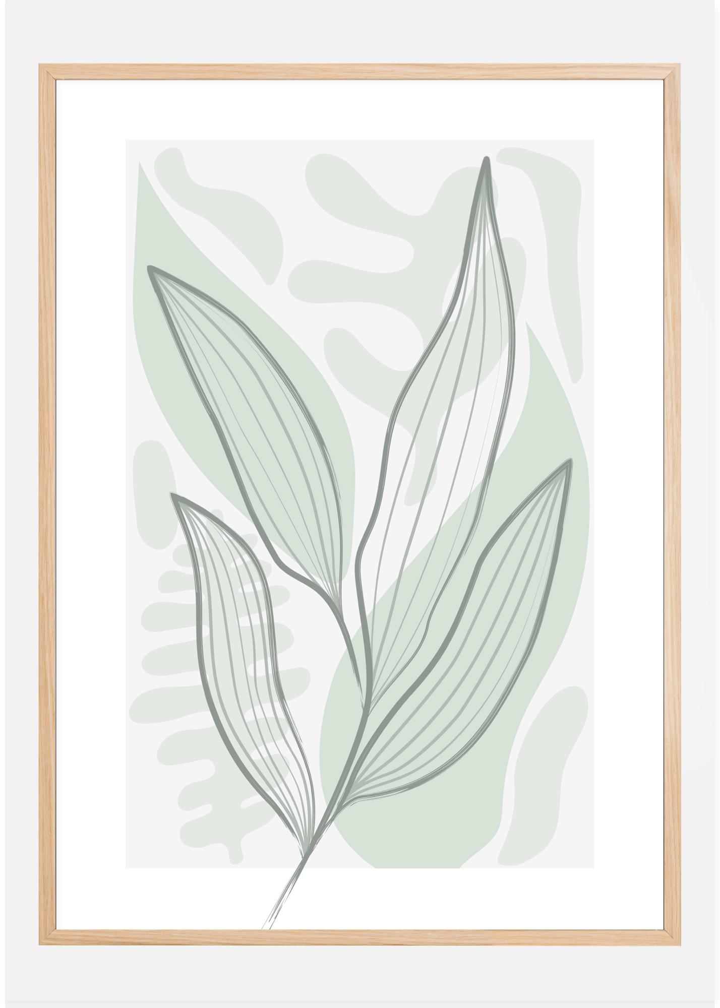 Une affiche abstraite de feuilles sur un simple fond vert avec différentes formes et motifs feuillus. Verts et gris doux, et souligné d’un trait gris, il dégage de puissantes vibrations printanières. Une sensation de douceur peut être ajoutée à n'importe quelle pièce de la maison.