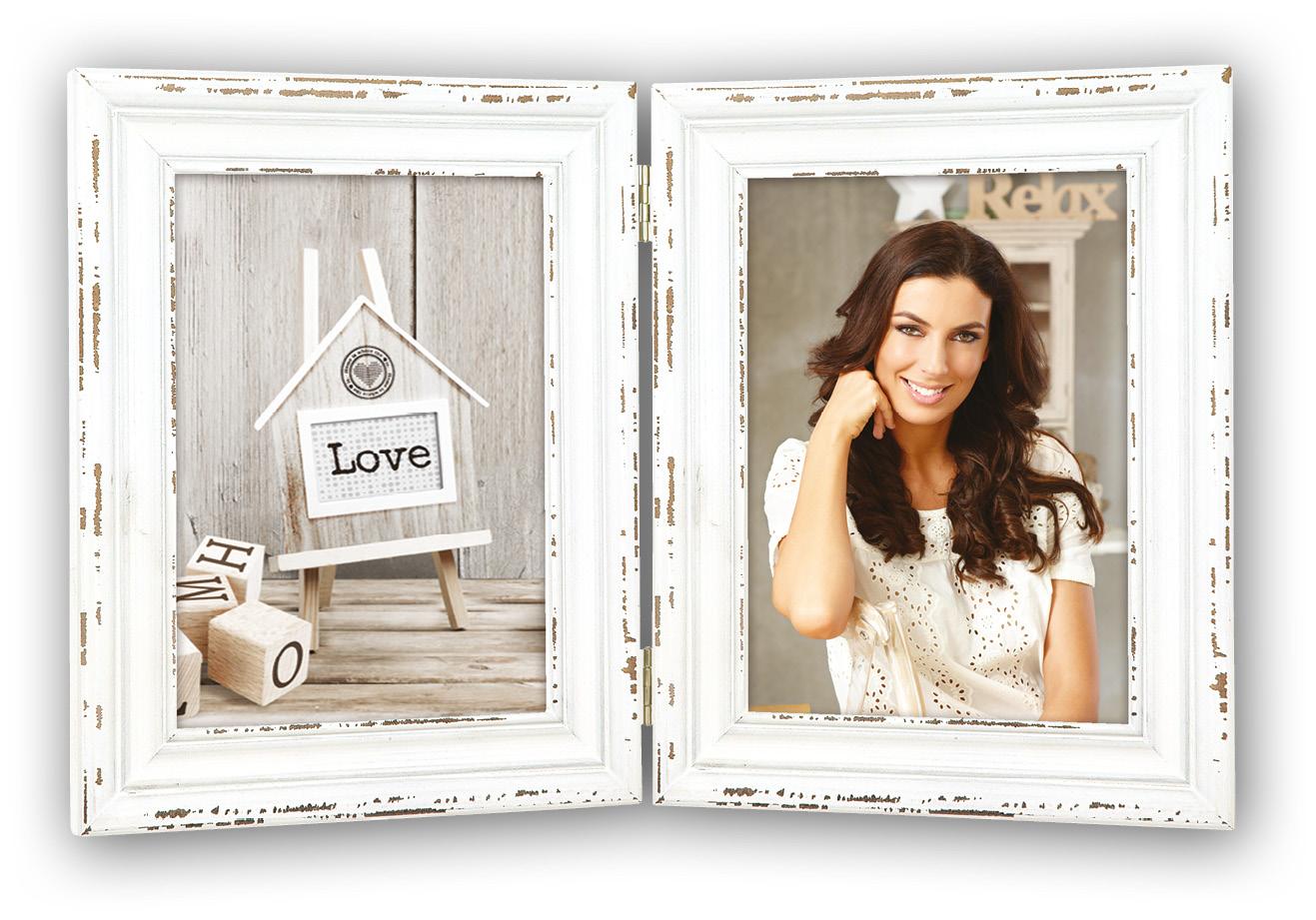 Si vous aimez les objets anciens et pleins de caractère, vous allez adorer ce joli cadre pliant ! Il se compose de 2 cadres classiques aux détails patinés qui sont tenus ensemble par 2 charnières argentées. Mettez-y vos motifs préférés et posez-le comme décoration accueillante sur votre bureau ou votre table de chevet.