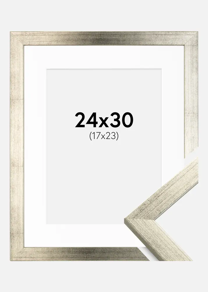 Cadre Stilren Argent 24x30 cm - Passe-partout Blanc 18x24 cm