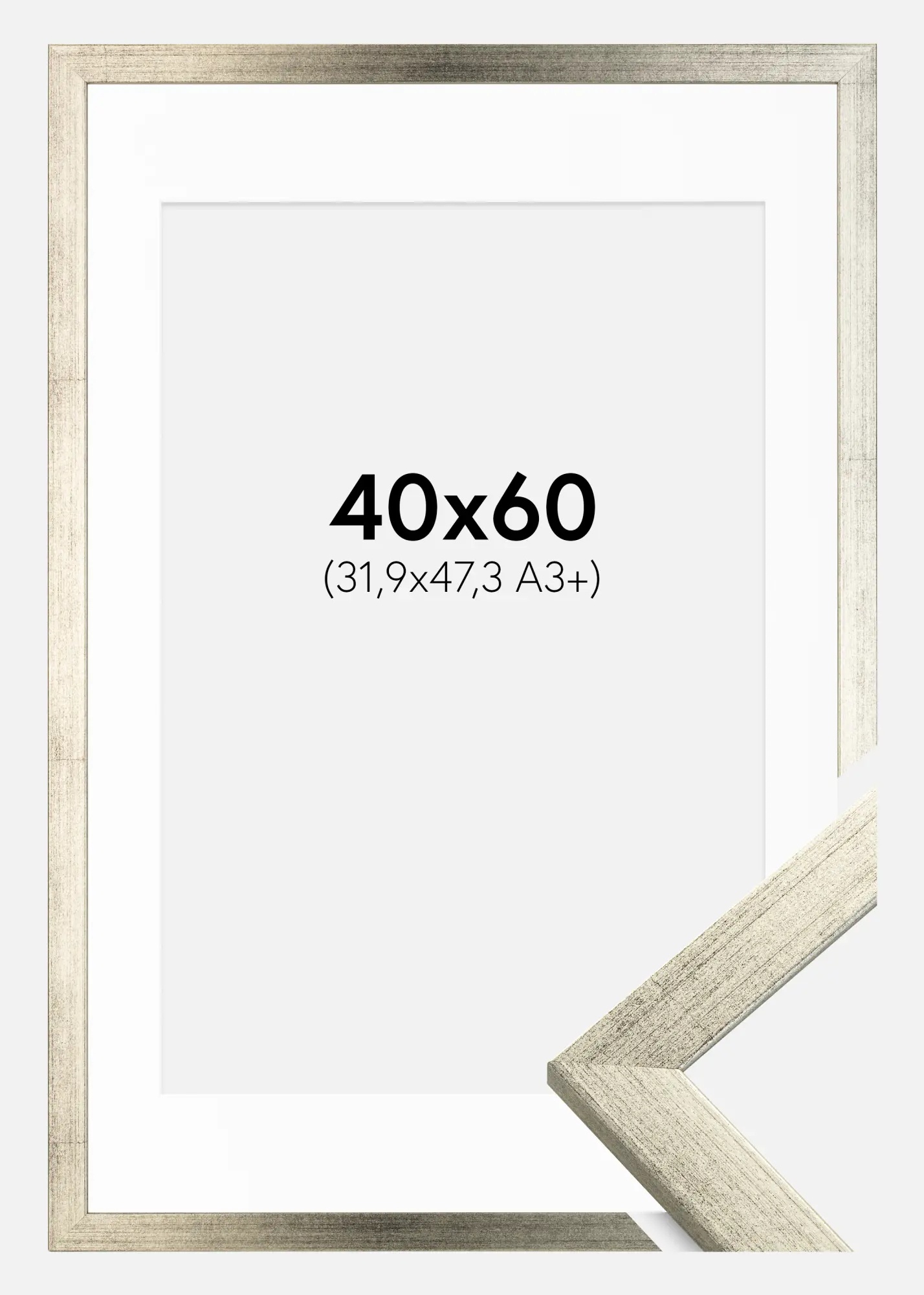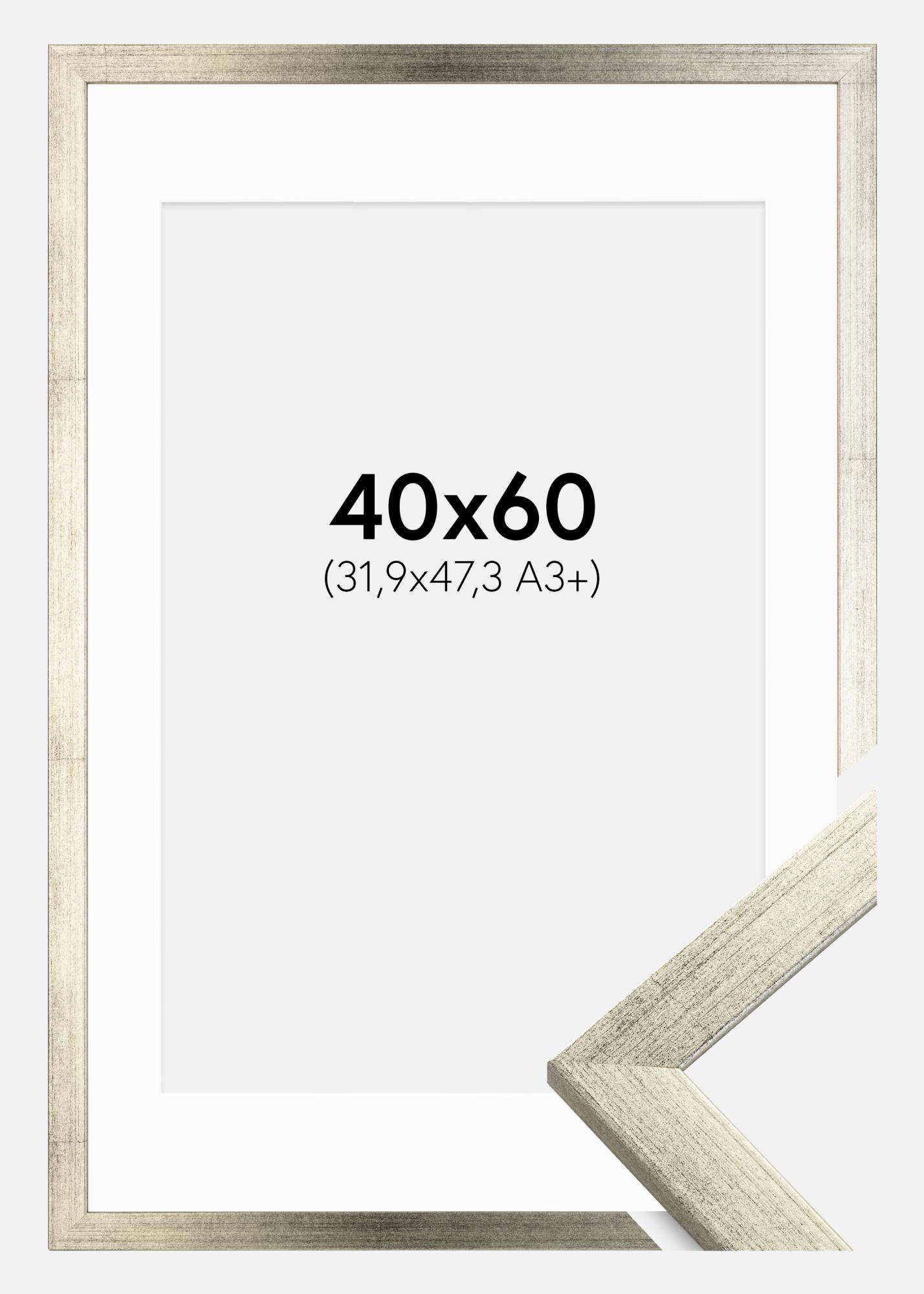 Cadre Stilren Argent 40x60 cm - Passe-partout Blanc 32,9x48,3 cm