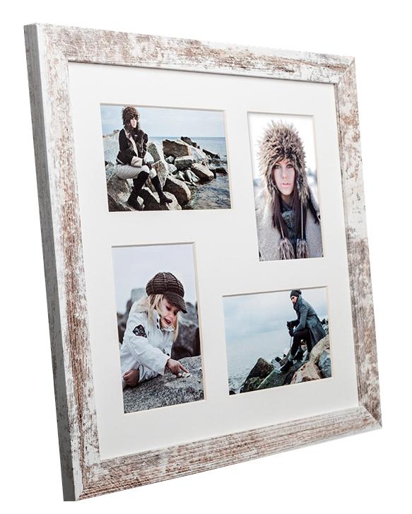 Joli cadre vintage avec un profil de cadre large à l'aspect usé en blanc et bois. Donne une dimension supplémentaire à vos images et convient parfaitement quand vous désirez une sensation vintage authentique. Cadre pêle-mêle avec de la place pour 3 images en format 10x15 cm.