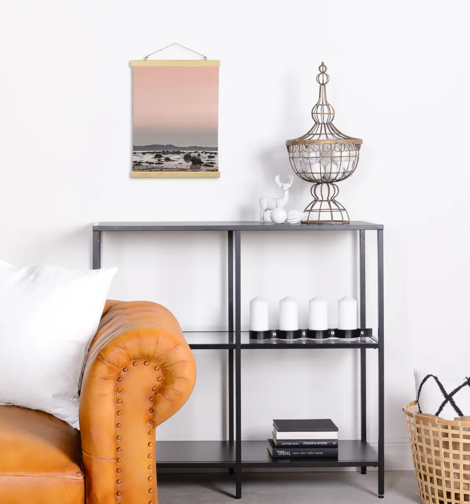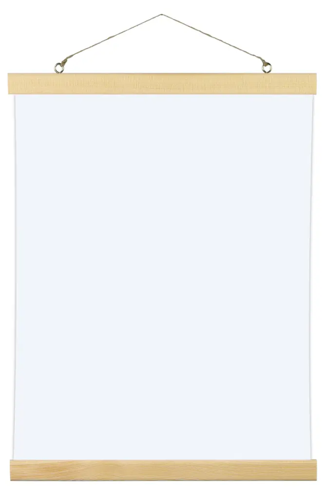 Vous accrochez facilement votre poster entre les deux baguettes du support pour poster à l'aide des aimants associés.