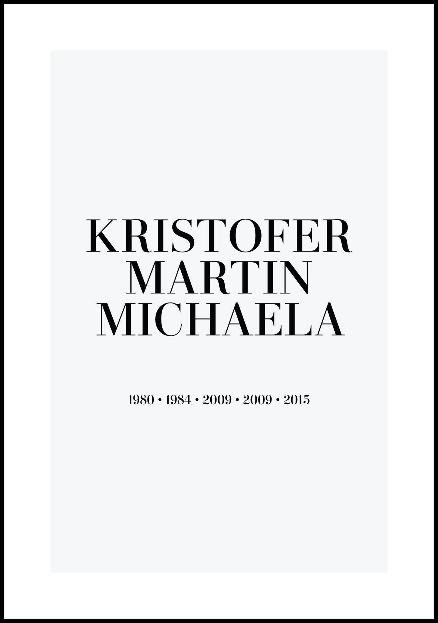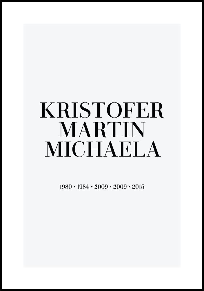 Ein persönliches Poster ist ein einzigartiges und spaßiges Geschenk, sowohl zu geben als auch zu erhalten, und es wird eine schöne Erinnerung sein, die lange gepflegt wird. Du füllst einfach die oben genannten Felder mit den Informationen aus, die du einbeziehen möchtest, und wir erstellen dein persönliches Poster!