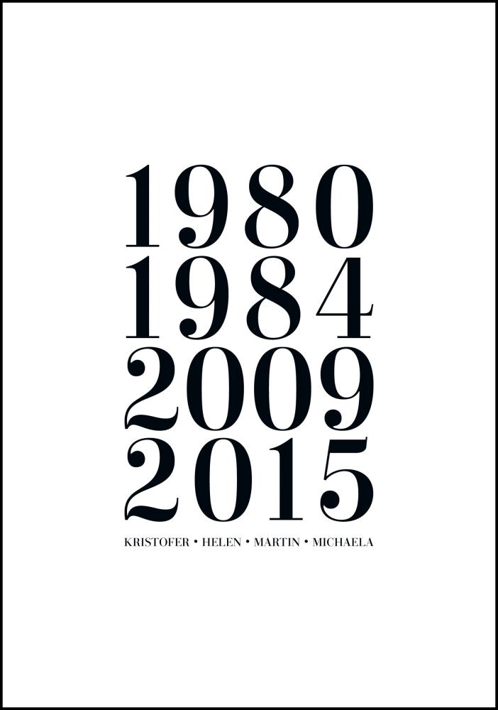 Ein persönliches Poster ist ein einzigartiges und spaßiges Geschenk, sowohl zu geben als auch zu erhalten, und es wird eine schöne Erinnerung sein, die lange gepflegt wird. Du füllst einfach die oben genannten Felder mit den Informationen aus, die du einbeziehen möchtest, und wir erstellen dein persönliches Poster!