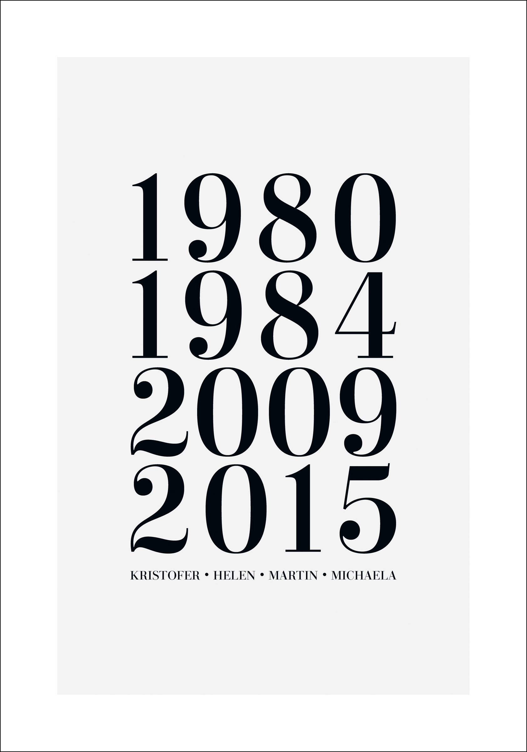 Ein persönliches poster ist ein einzigartiges und spaßiges Geschenk, sowohl zu geben als auch zu erhalten, und es wird eine schöne Erinnerung sein, die lange gepflegt wird. Du füllst einfach die oben genannten Felder mit den Informationen aus, die du einbeziehen möchtest, und wir erstellen dein persönliches poster!