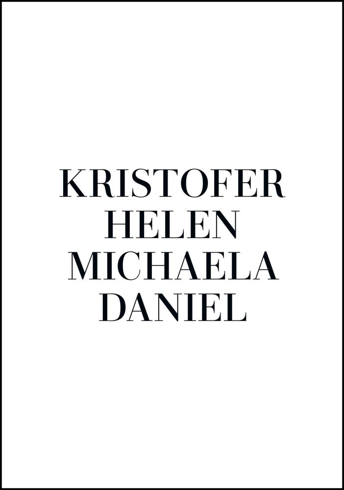 Ein persönliches Poster ist ein einzigartiges und spaßiges Geschenk, sowohl zu geben als auch zu erhalten, und es wird eine schöne Erinnerung sein, die lange gepflegt wird. Du füllst einfach die oben genannten Felder mit den Informationen aus, die du einbeziehen möchtest, und wir erstellen dein persönliches Poster!