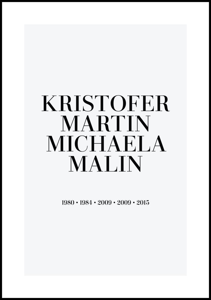 Ein persönliches poster ist ein einzigartiges und spaßiges Geschenk, sowohl zu geben als auch zu erhalten, und es wird eine schöne Erinnerung sein, die lange gepflegt wird. Du füllst einfach die oben genannten Felder mit den Informationen aus, die du einbeziehen möchtest, und wir erstellen dein persönliches poster!