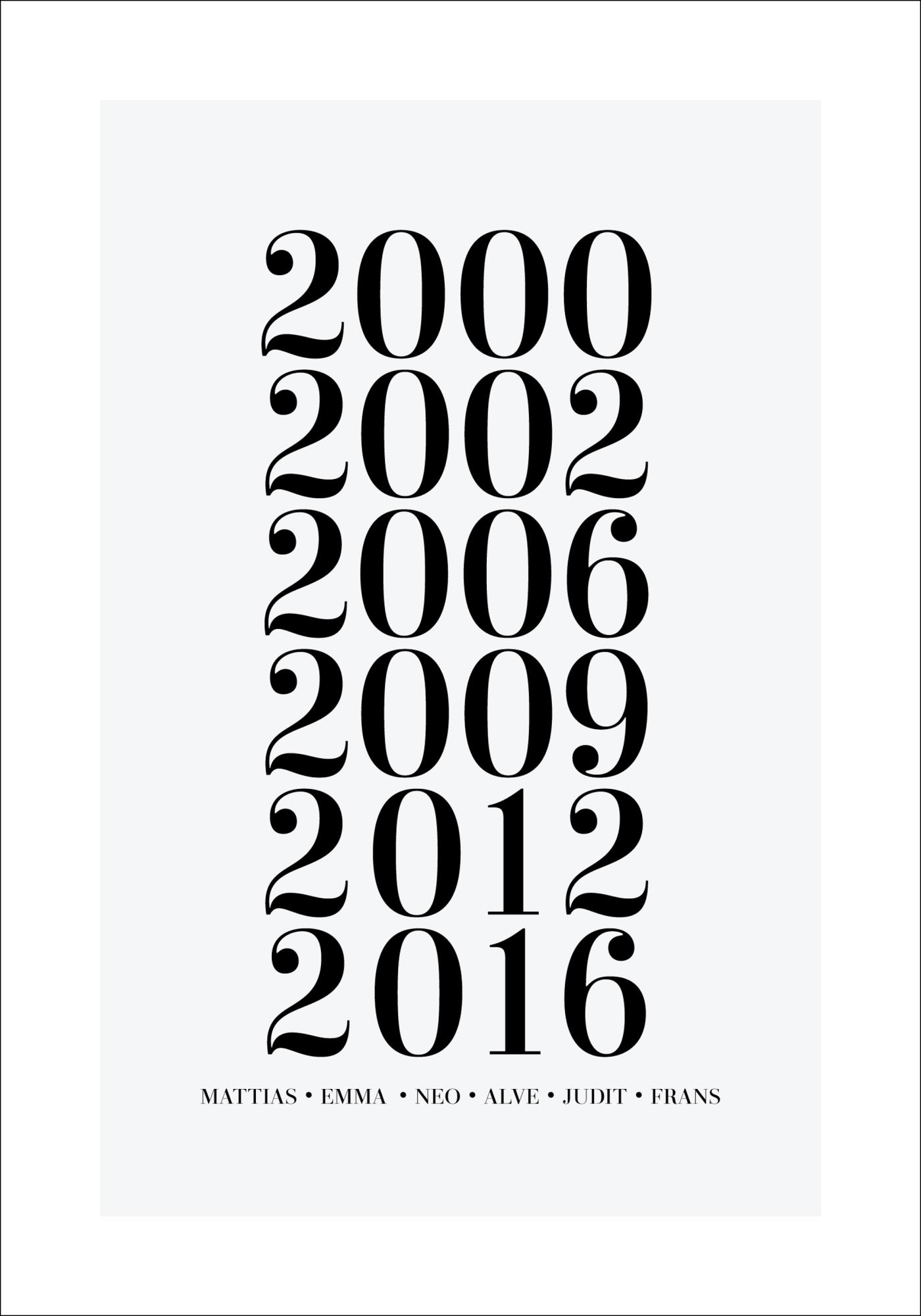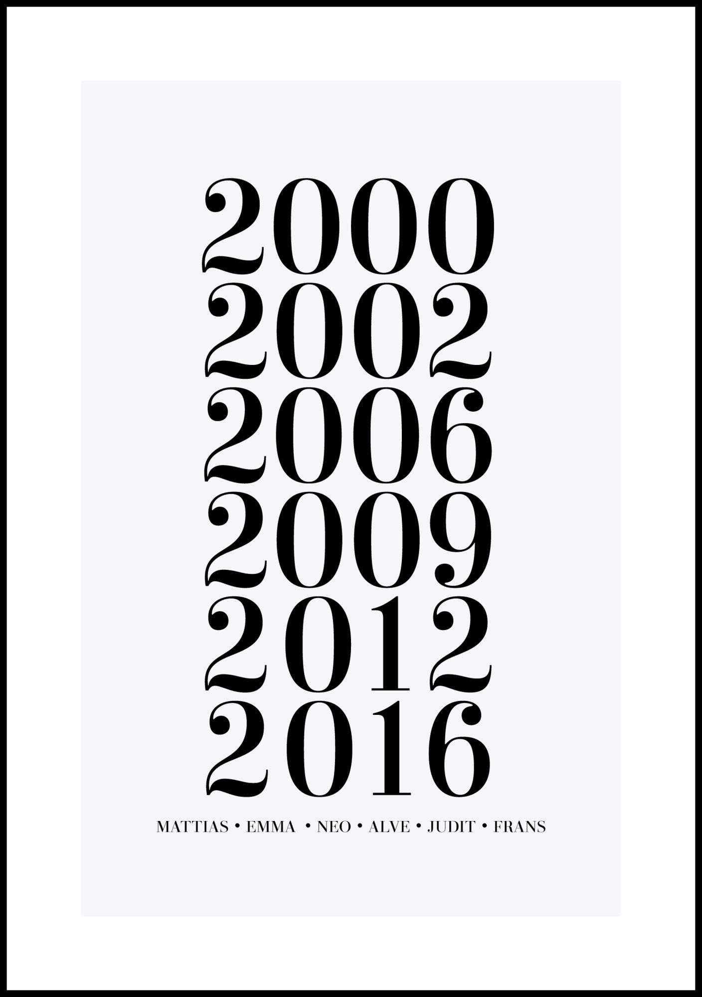 Tableau de famille - 6 années de naissance et noms - Gris (21x29,7 cm (A4))