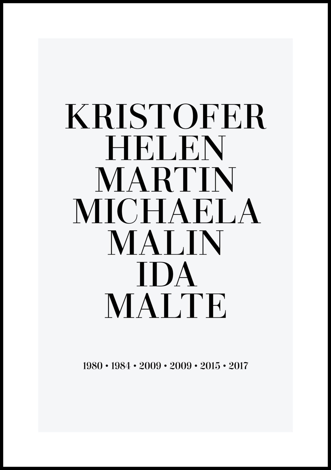 Ein persönliches Poster ist ein einzigartiges und spaßiges Geschenk, sowohl zu geben als auch zu erhalten, und es wird eine schöne Erinnerung sein, die lange gepflegt wird. Du füllst einfach die oben genannten Felder mit den Informationen aus, die du einbeziehen möchtest, und wir erstellen dein persönliches Poster!