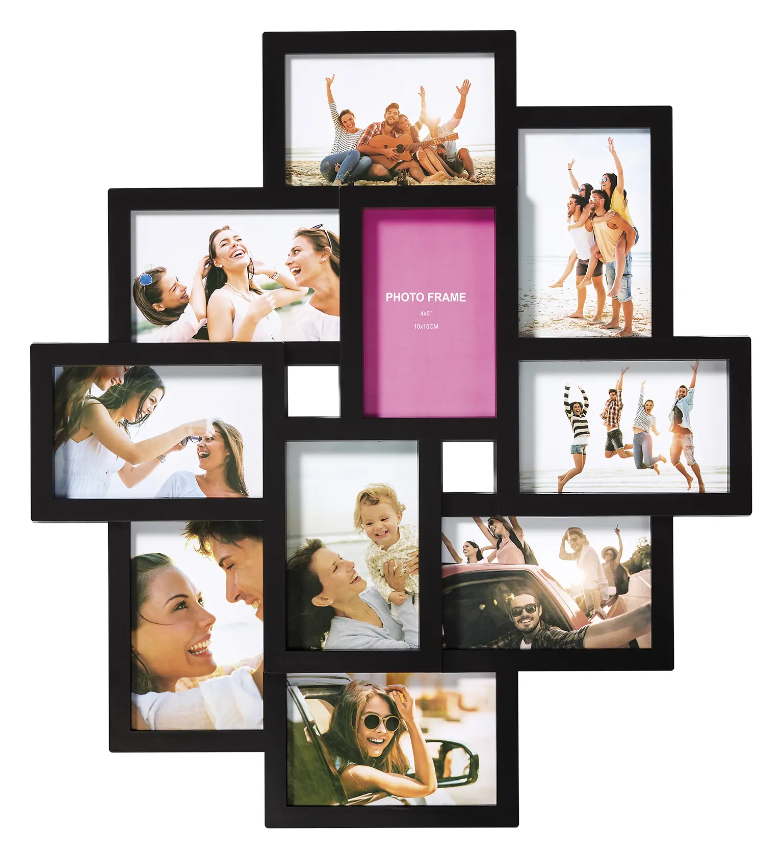 Cadre pêle-mêle épuré avec un espace pour 10 images au format 10x15 centimètres, qui vous permet d'organiser facilement un groupe d'images d'une superbe façon. La conception du cadre rend le mur de tableaux facile à assortir avec le reste de l'intérieur et est un bel ajout pour n'importe quelle pièce. Compilez toutes vos meilleures photos de vacances et créez un joli collage de merveilleux souvenirs. Le cadre est également un beau cadeau à offrir aux grands-parents qui aimeraient voir leurs petits-enfants un peu plus souvent.
