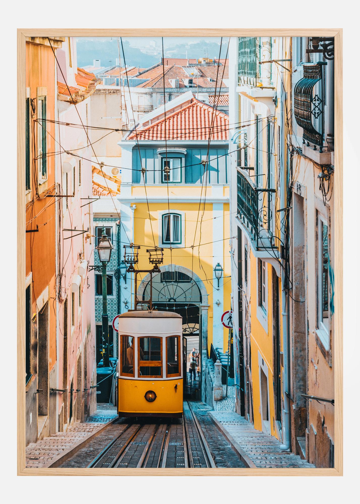 Cette affiche colorée et pittoresque dépeint l'atmosphère charmante et animée d'une rue de ville européenne, pleine d'histoire et de magie quotidienne. Au premier plan, nous voyons un tramway jaune classique, un symbole iconique du transport public de la ville, se déplaçant calmement le long des rues étroites flanquées d'une architecture traditionnelle dans des tons chauds de jaune et de rouge. Cette affiche est comme une ouverture vers un autre monde et nous invite à monter à bord et découvrir les secrets de la ville.