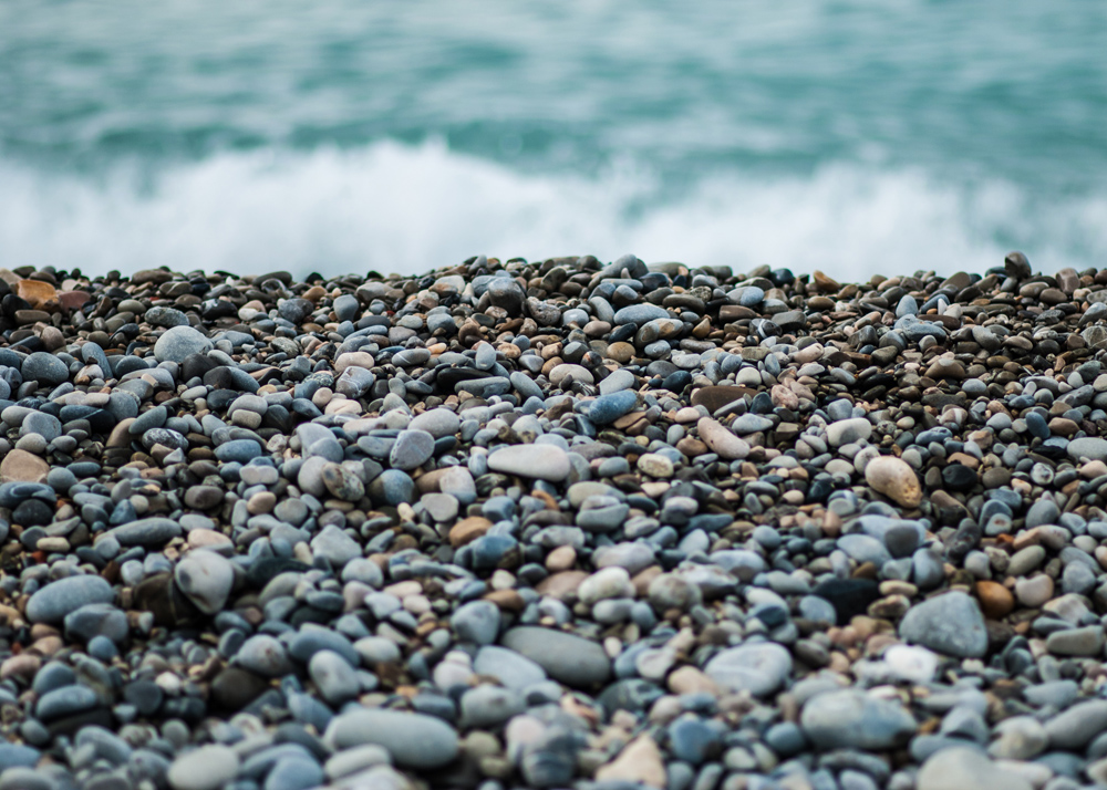Écoutez le bruit des vagues de la mer depuis ce poster avec une belle plage de galets au premier plan. La faible profondeur de champ donne une image intéressante qui attire les yeux dans l'image. Trouvez-vous un morceau de verre poli parmi les pierres ? La palette de couleurs gris-bleu se marie bien avec un cadre fin contre un mur clair, idéalement avec des accessoires marins.
