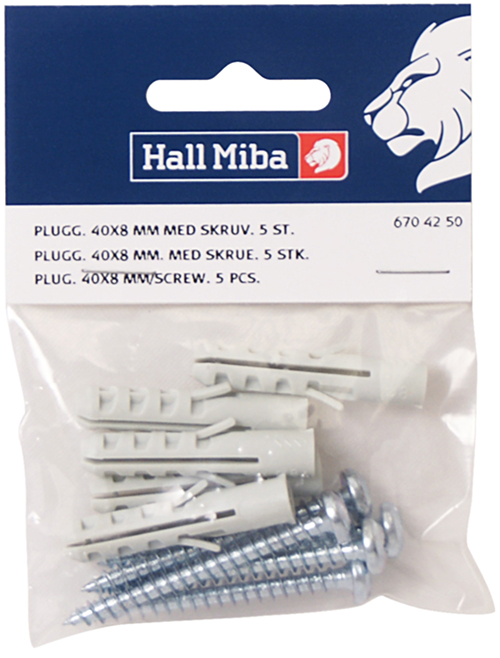 Vis et cheville pour mur en béton - lot de 5 (40x8 mm)